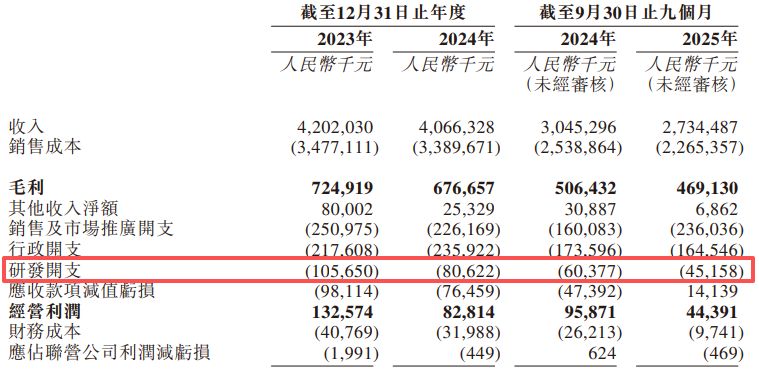 去年前三季度收入、利润“双降”,研发费率持续走低