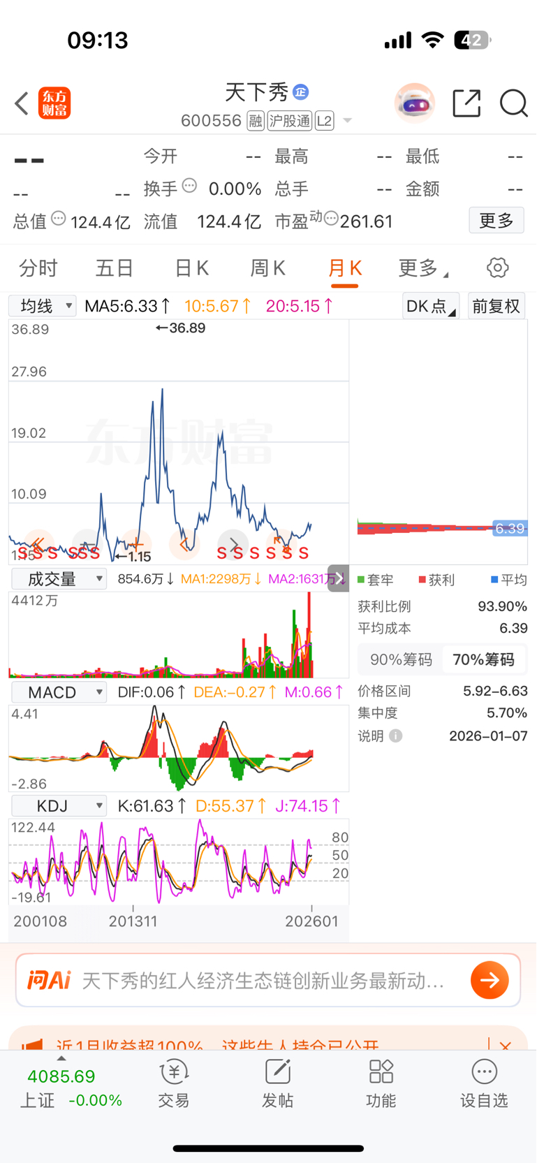 $天下秀(SH600556)$ 看一下,天下秀的月线图!