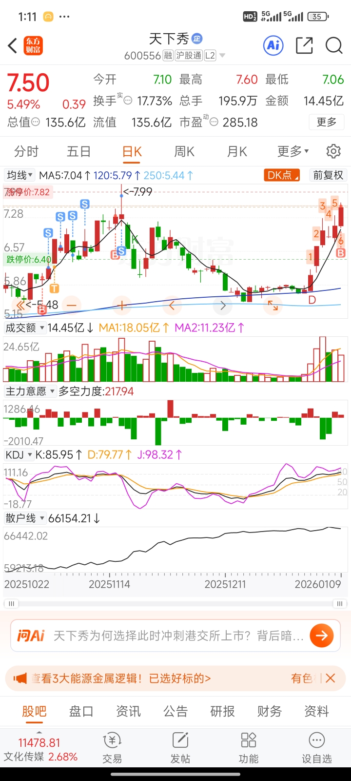 $天下秀(SH600556)$ 主升浪来了,拿稳!