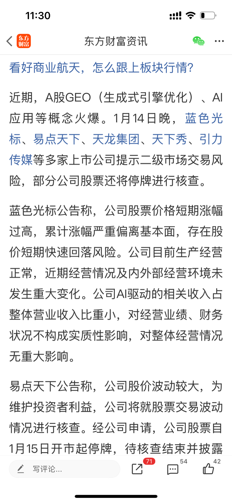 $天下秀(SH600556)$ 上面发话了,妖股,很不开心啊,我愿赌输输,航天动力,航天发展,四创,海格那些国有单位几倍就不是妖股,私企就是妖股,我服我服。
