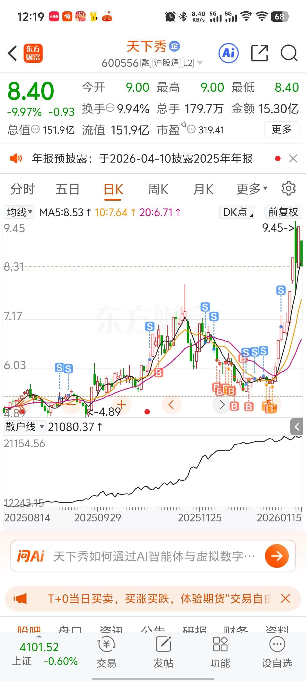 $天下秀(SH600556)$ A杀30个点刚好可以加仓了