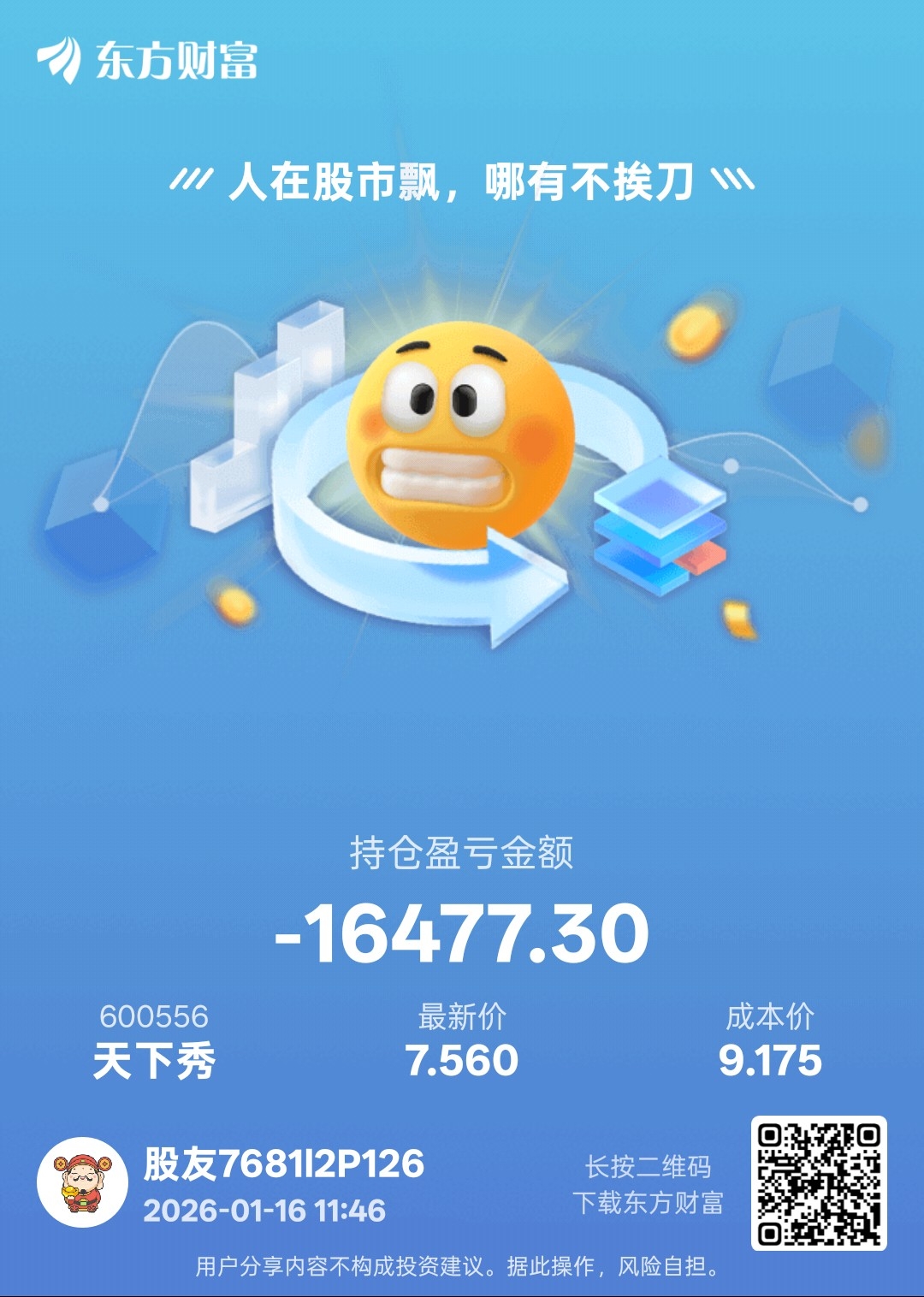 温馨提示: 1.根据《证券法》规定,禁止编造、传播虚假信息或者误导性信息,扰乱证券市场;2.用户在本社区发表的所有资料、言论等仅代表个人观点,与本网站立场无关,不对您构成任何投资建议。用户应基于自己的独立判断,自行决定证券投资并承担相应风险。《东方财富社区管理规定》