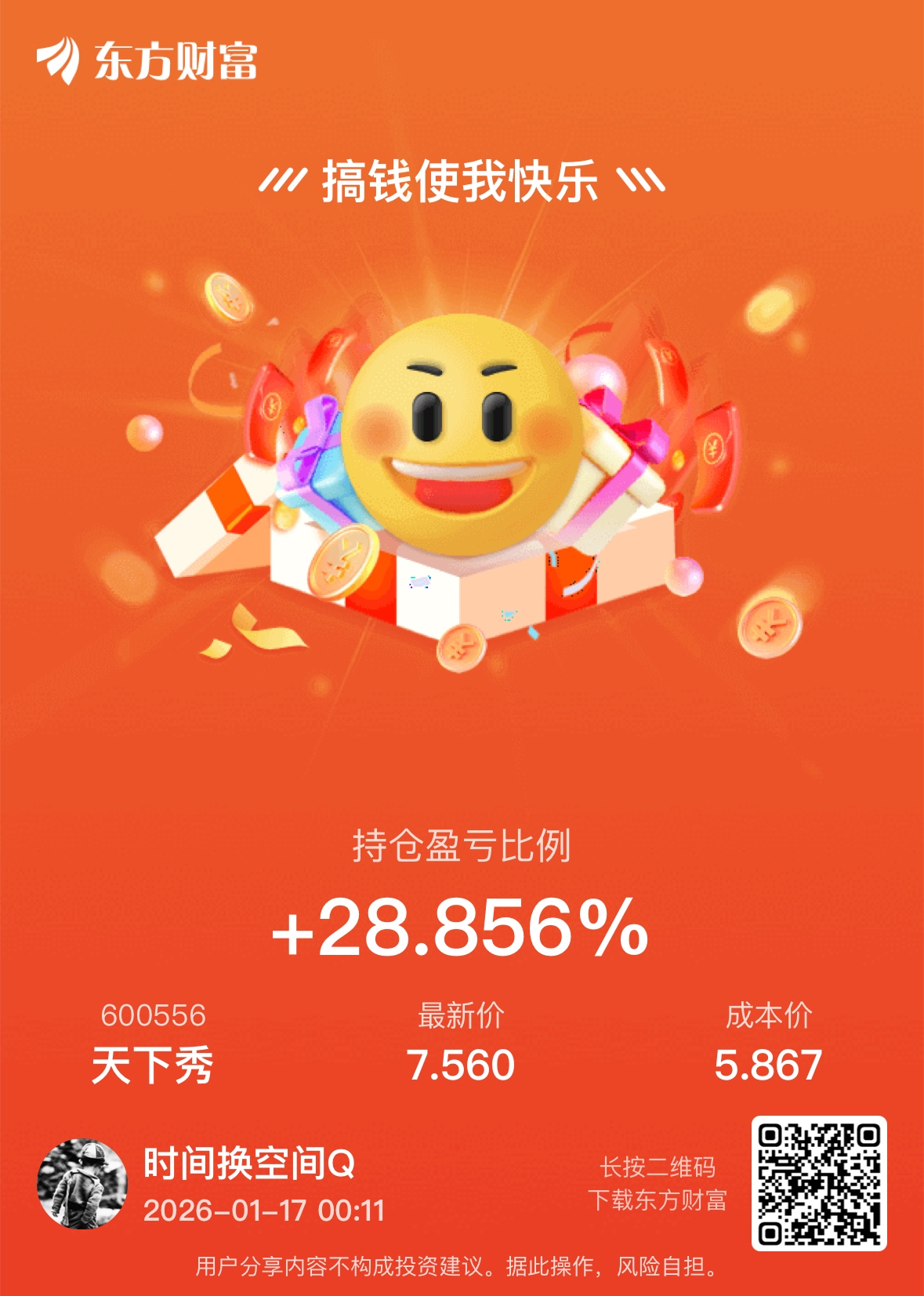 温馨提示: 1.根据《证券法》规定,禁止编造、传播虚假信息或者误导性信息,扰乱证券市场;2.用户在本社区发表的所有资料、言论等仅代表个人观点,与本网站立场无关,不对您构成任何投资建议。用户应基于自己的独立判断,自行决定证券投资并承担相应风险。《东方财富社区管理规定》