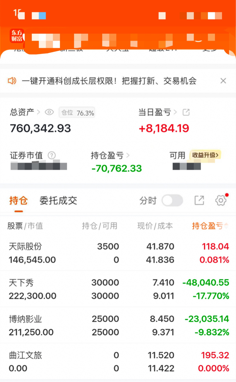 目前持有:$天下秀(SH600556)$ $天际股份(SZ002759)$ $博纳影业(SZ001330)$