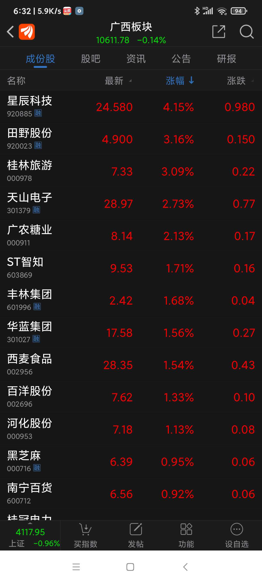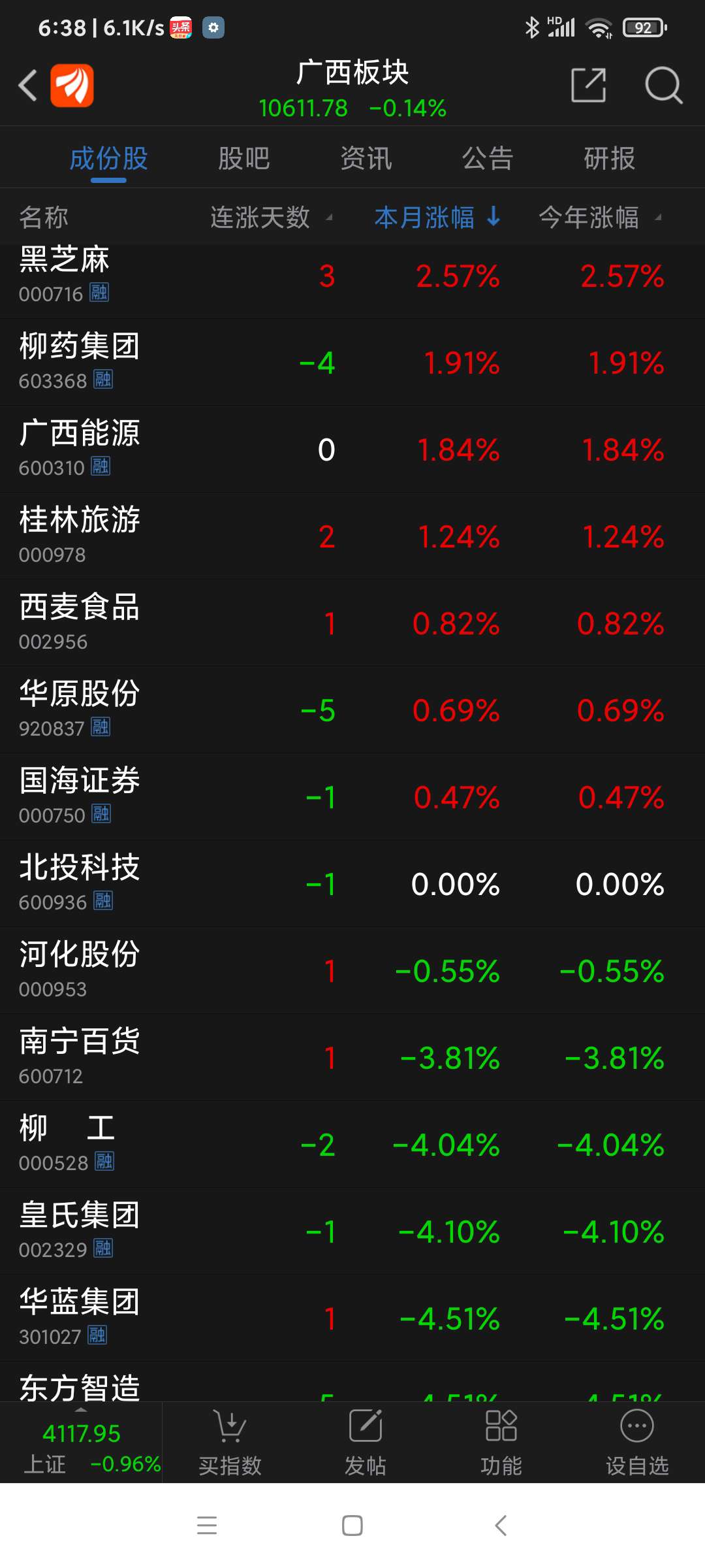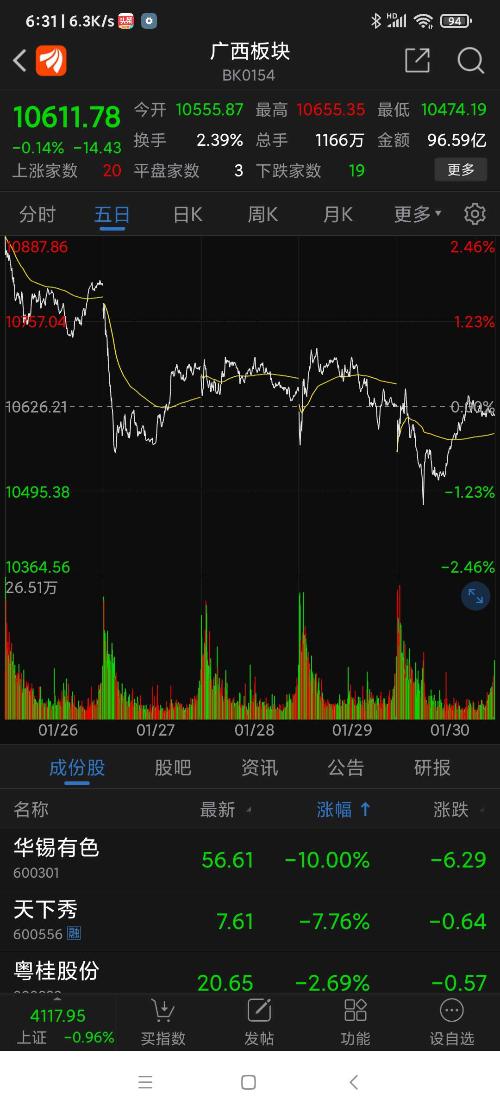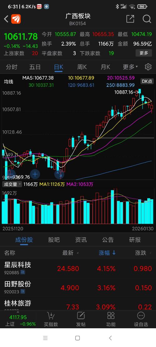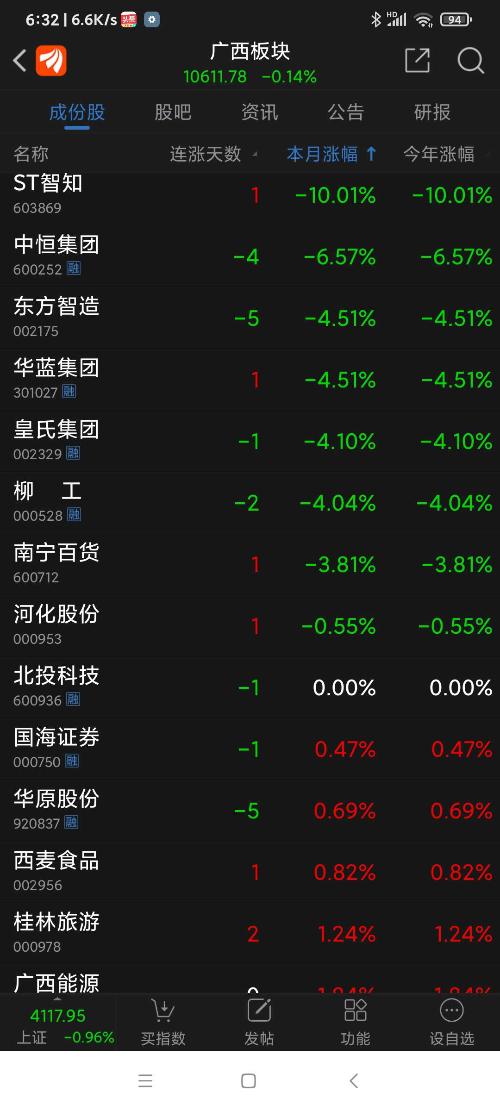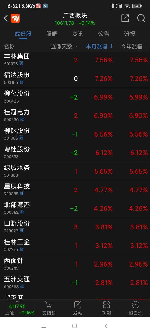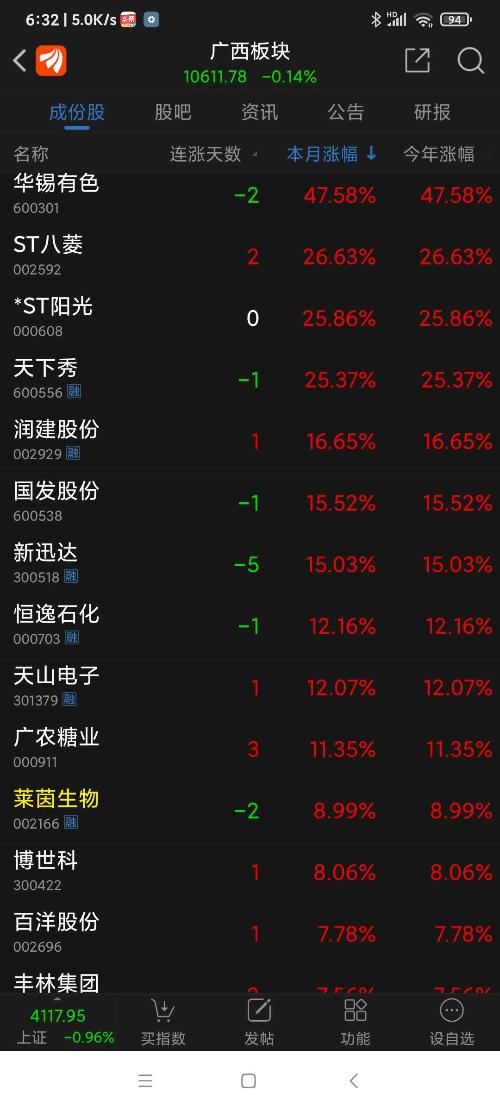 广西板块26年元月涨幅为6.73%,天下秀名列广西板块(共有42只股票)涨幅第四