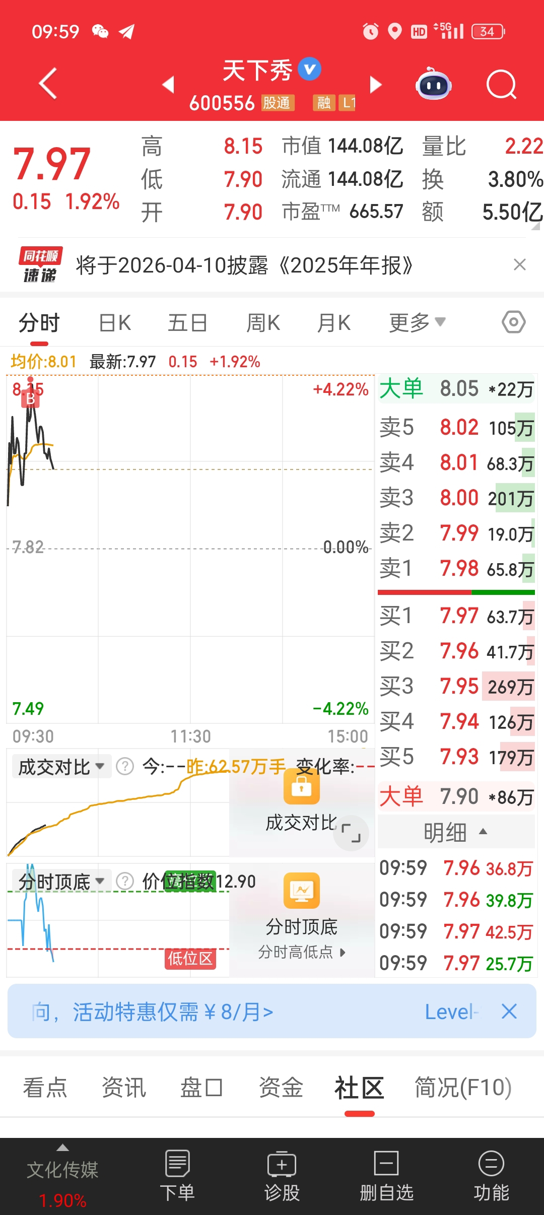 $天下秀(SH600556)$ 不争馒头,争口气呀!来个涨停吧