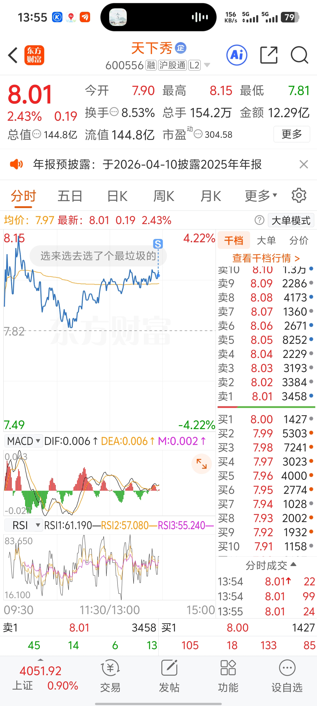 $天下秀(SH600556)$ 居然跑不过板块,溜了溜了