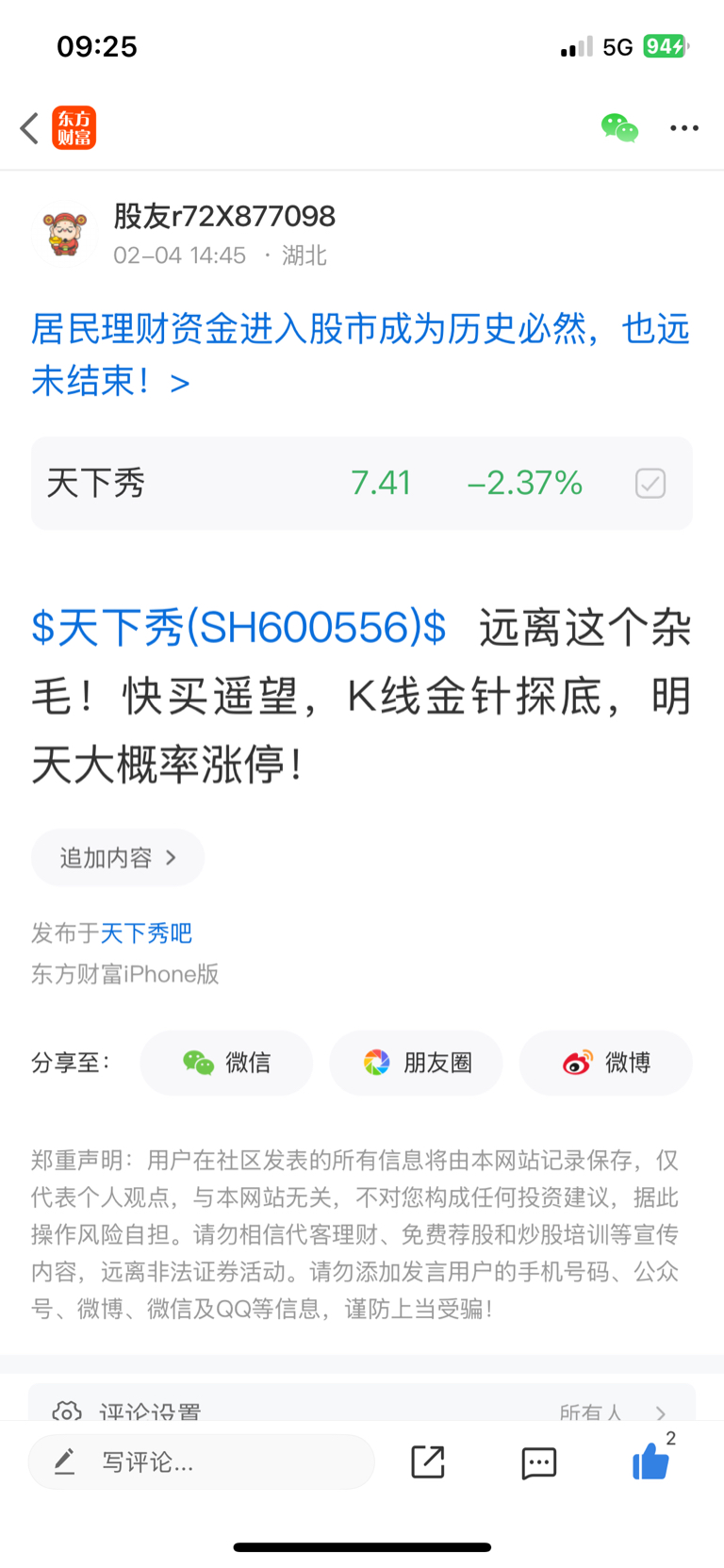 温馨提示: 1.根据《证券法》规定,禁止编造、传播虚假信息或者误导性信息,扰乱证券市场;2.用户在本社区发表的所有资料、言论等仅代表个人观点,与本网站立场无关,不对您构成任何投资建议。用户应基于自己的独立判断,自行决定证券投资并承担相应风险。《东方财富社区管理规定》