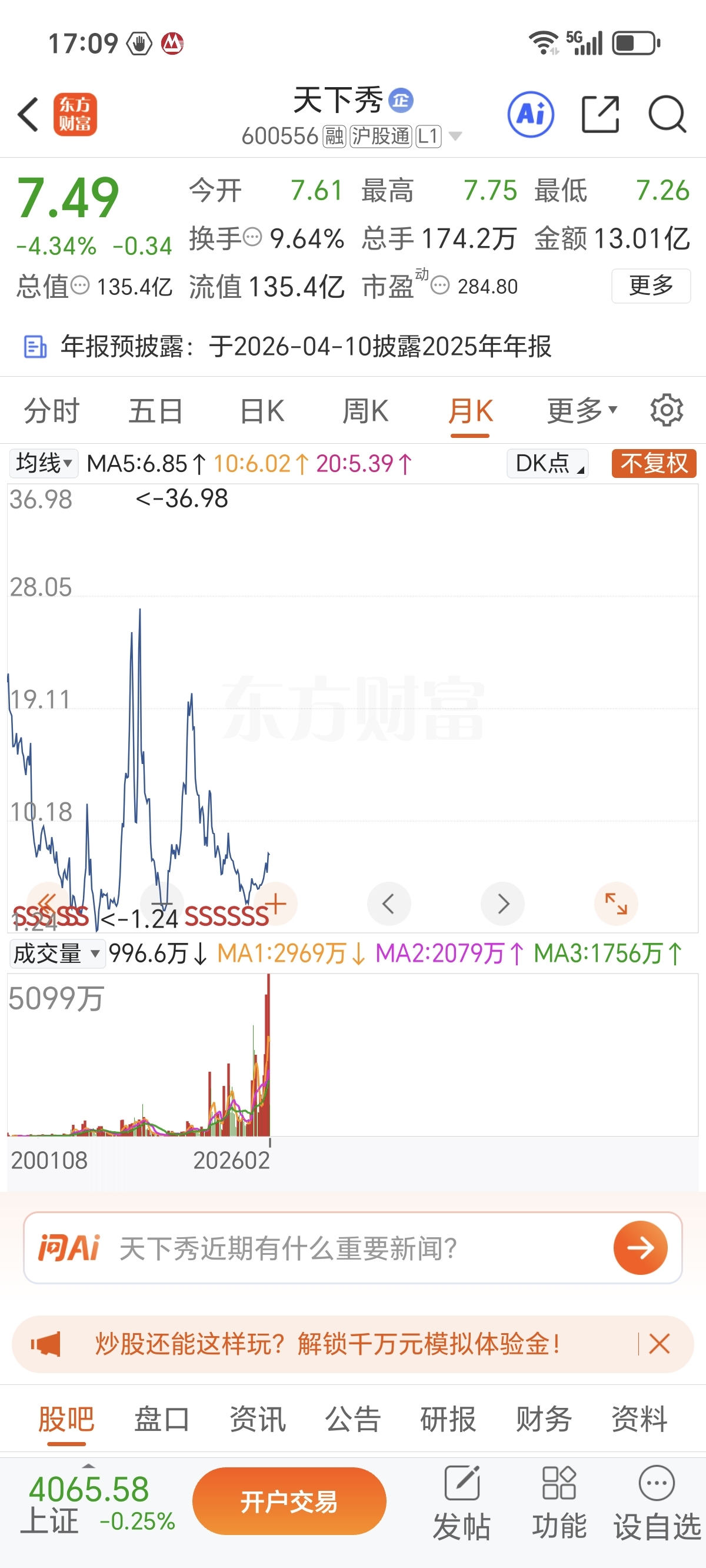 $天下秀(SH600556)$ 主力会不会挑战新高