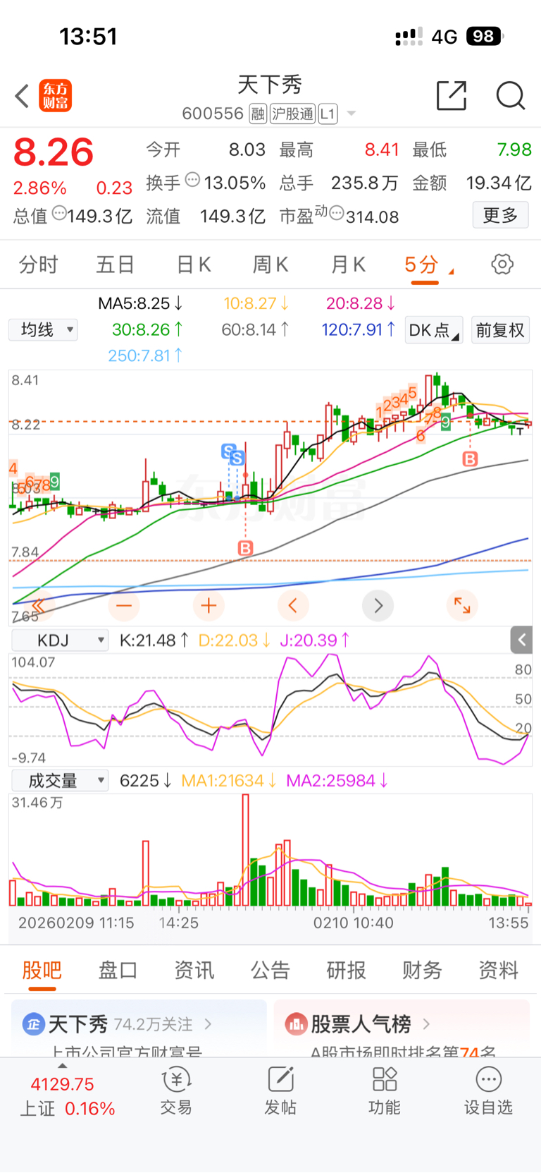 $天下秀(SH600556)$ 看好箱体突破,突破就是第二波上涨行情