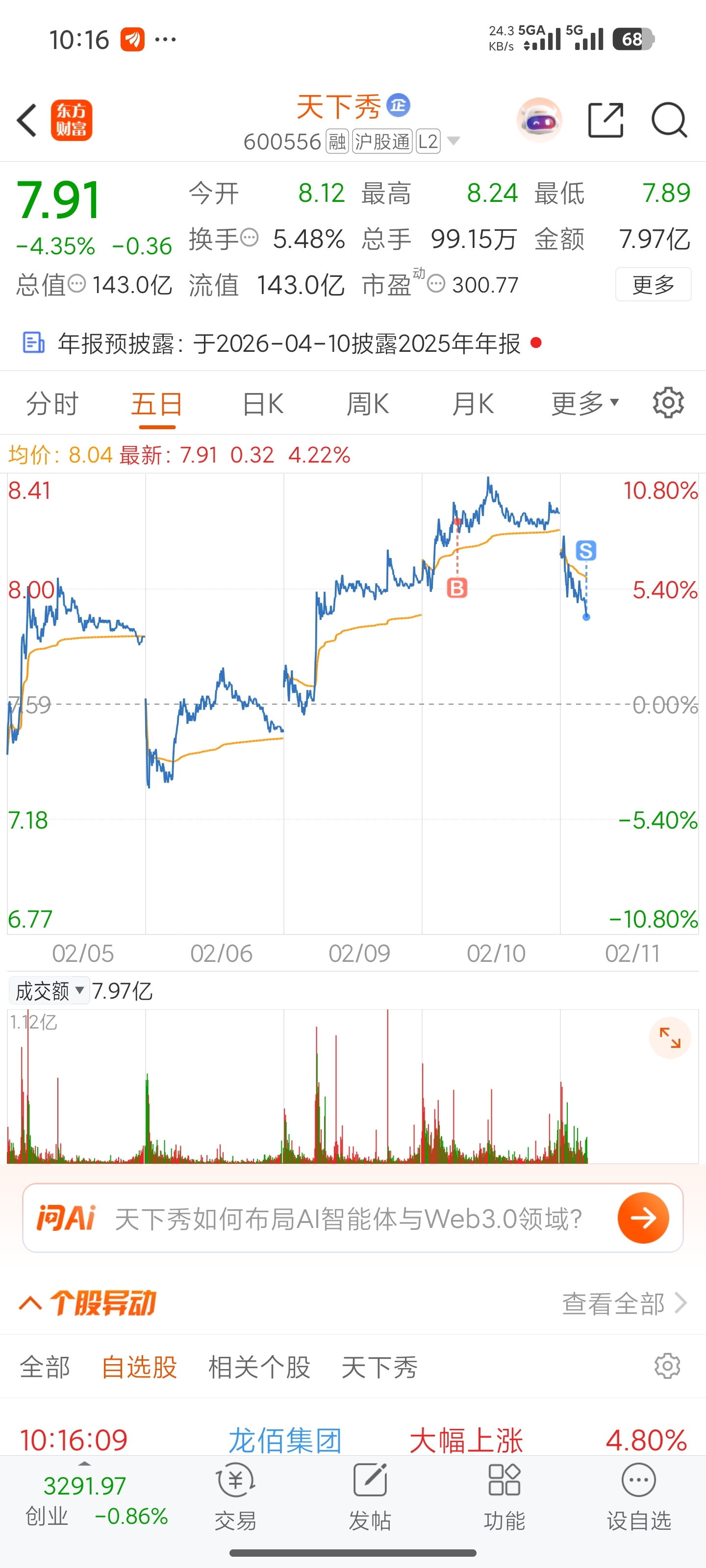 $天下秀(SH600556)$ 挨了一逼兜走了