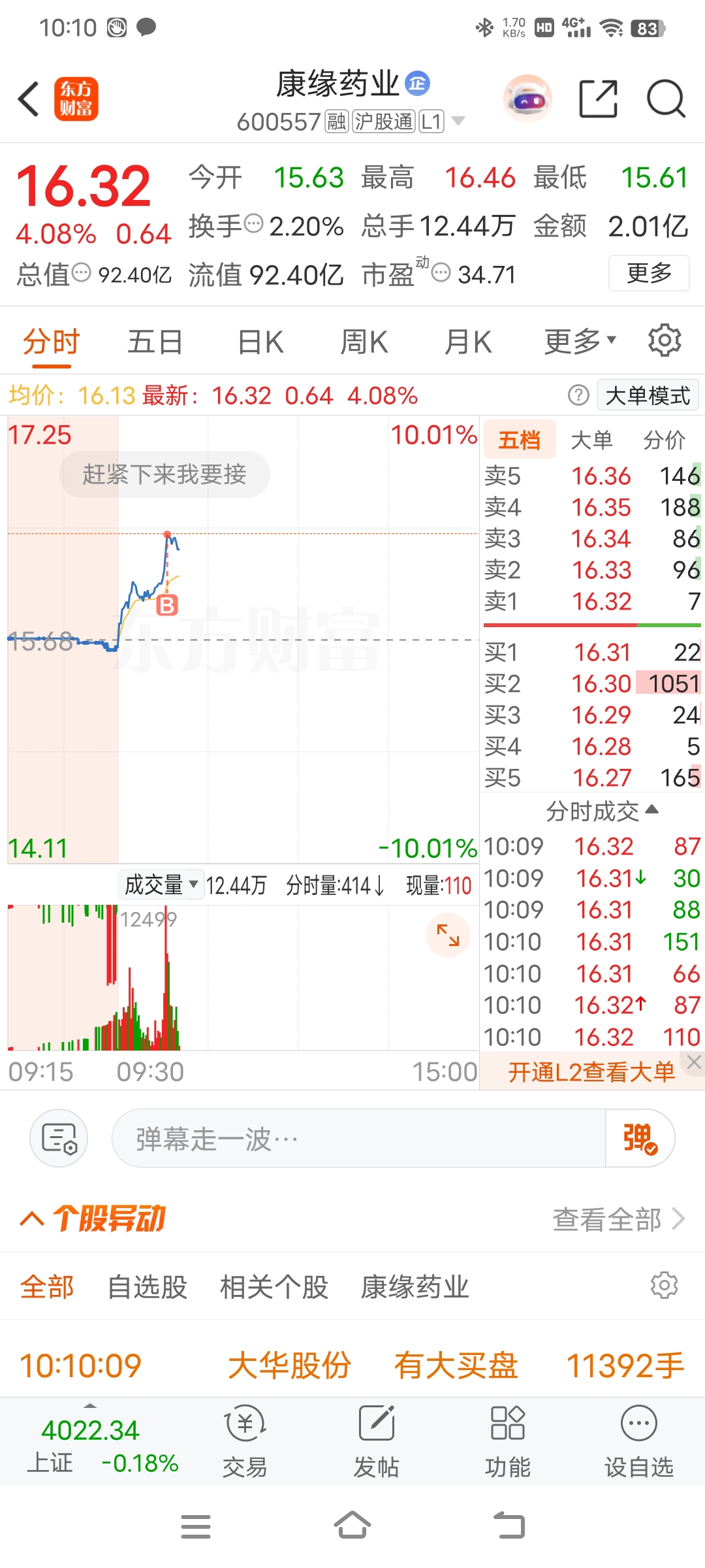 $康缘药业(SH600557)$ 服了呀,一买就跌,快起来呀