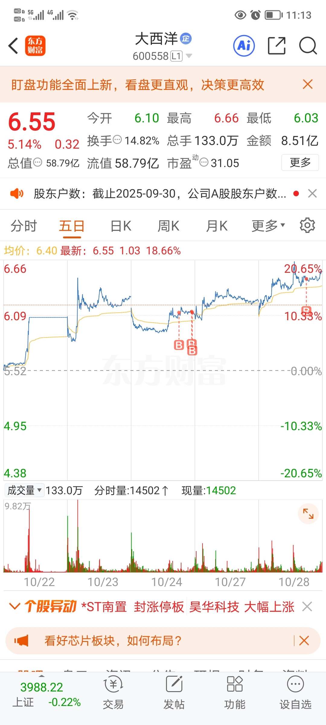 $大西洋(SH600558)$ 昨天上车,今天继续加仓