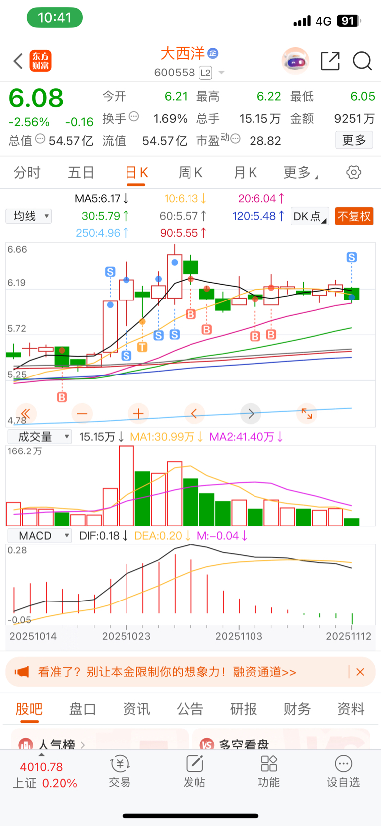 $大西洋(SH600558)$ 多拿几天少挣点走了走了。
