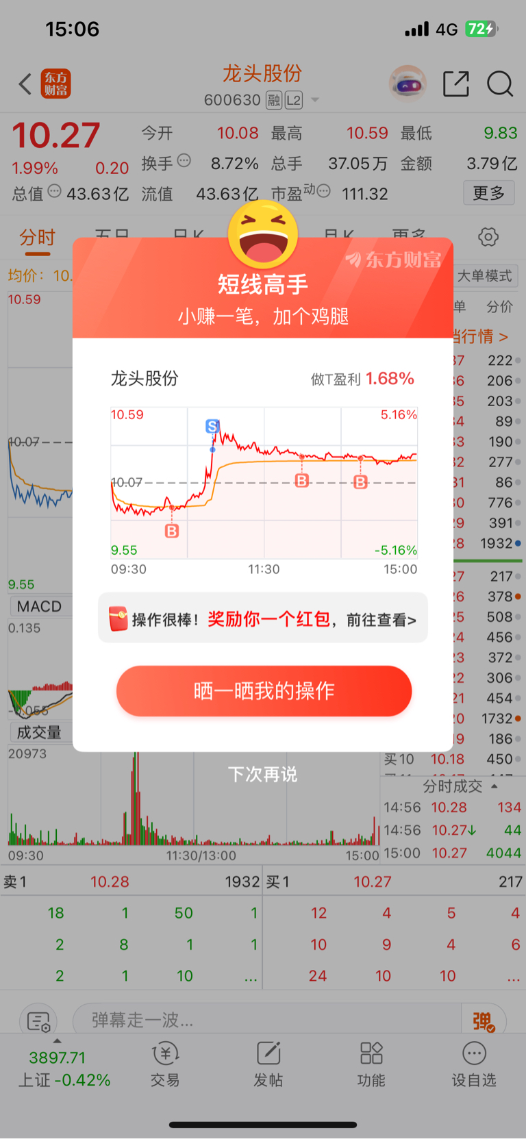 傻缺乌龟股,我也懒得动你了。持有的其他股都特活跃做T也好做,这股T都没得T。
