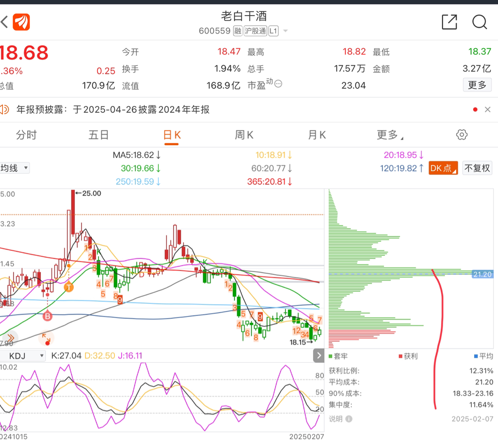 $老白干酒(SH600559)$ 这筹码峰不得洗一年半载呀