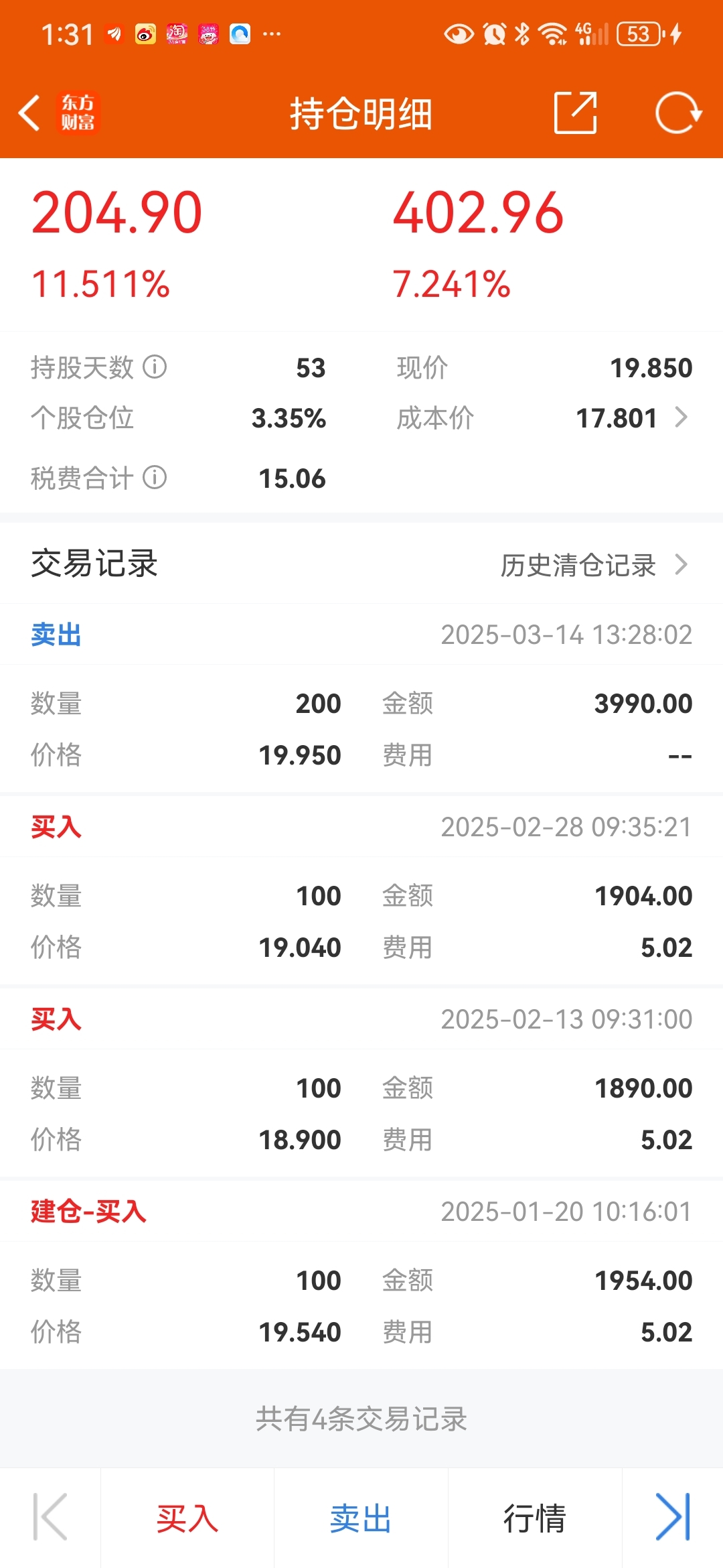$老白干酒(SH600559)$ 跑咯#炒股日记# 赚点早餐钱