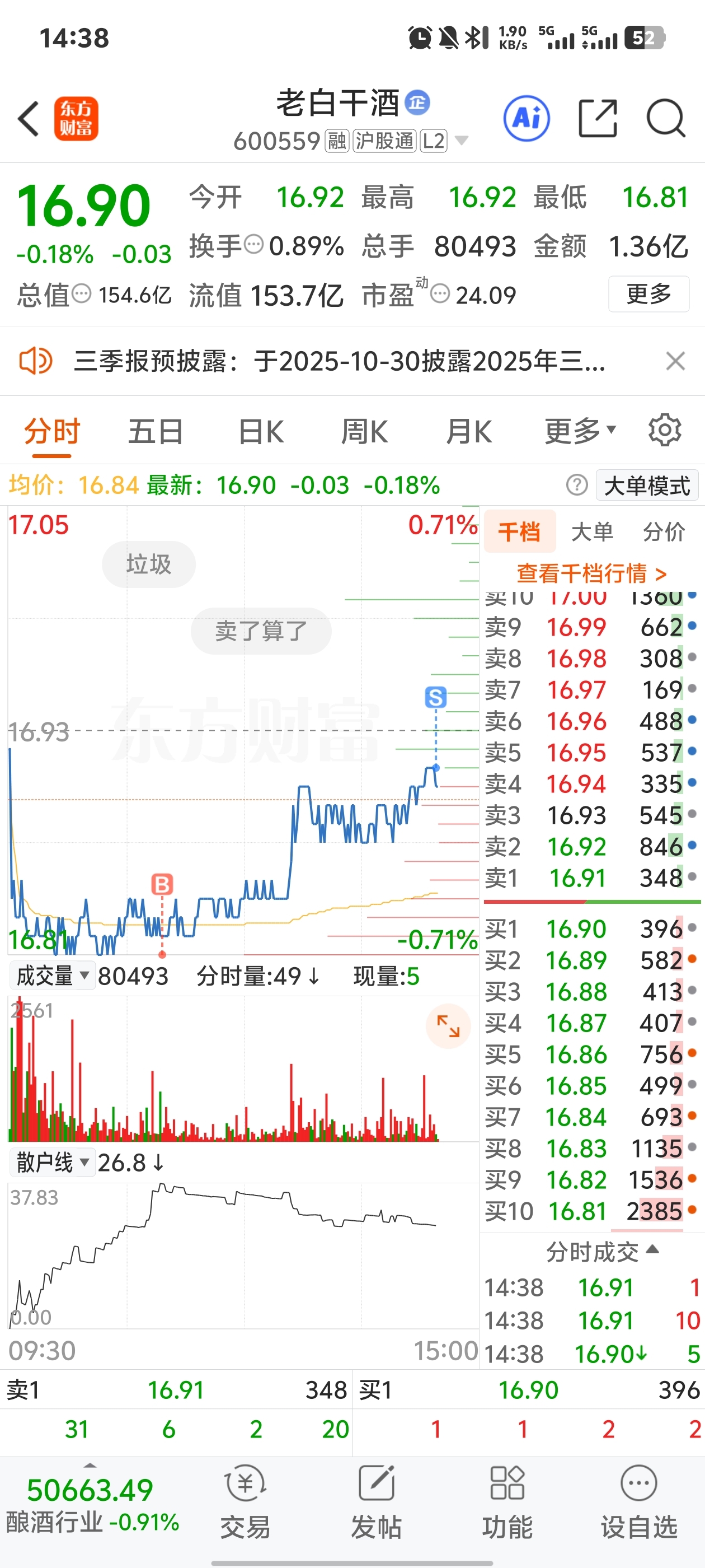 $老白干酒(SH600559)$ 就这吧,落袋为安