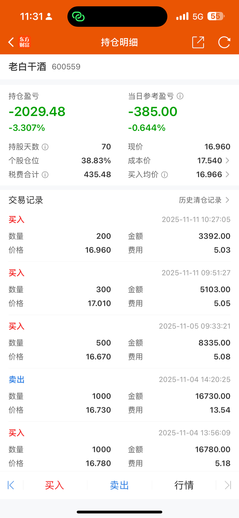 $老白干酒(SH600559)$ 多跌点。还以为我跌不起呢