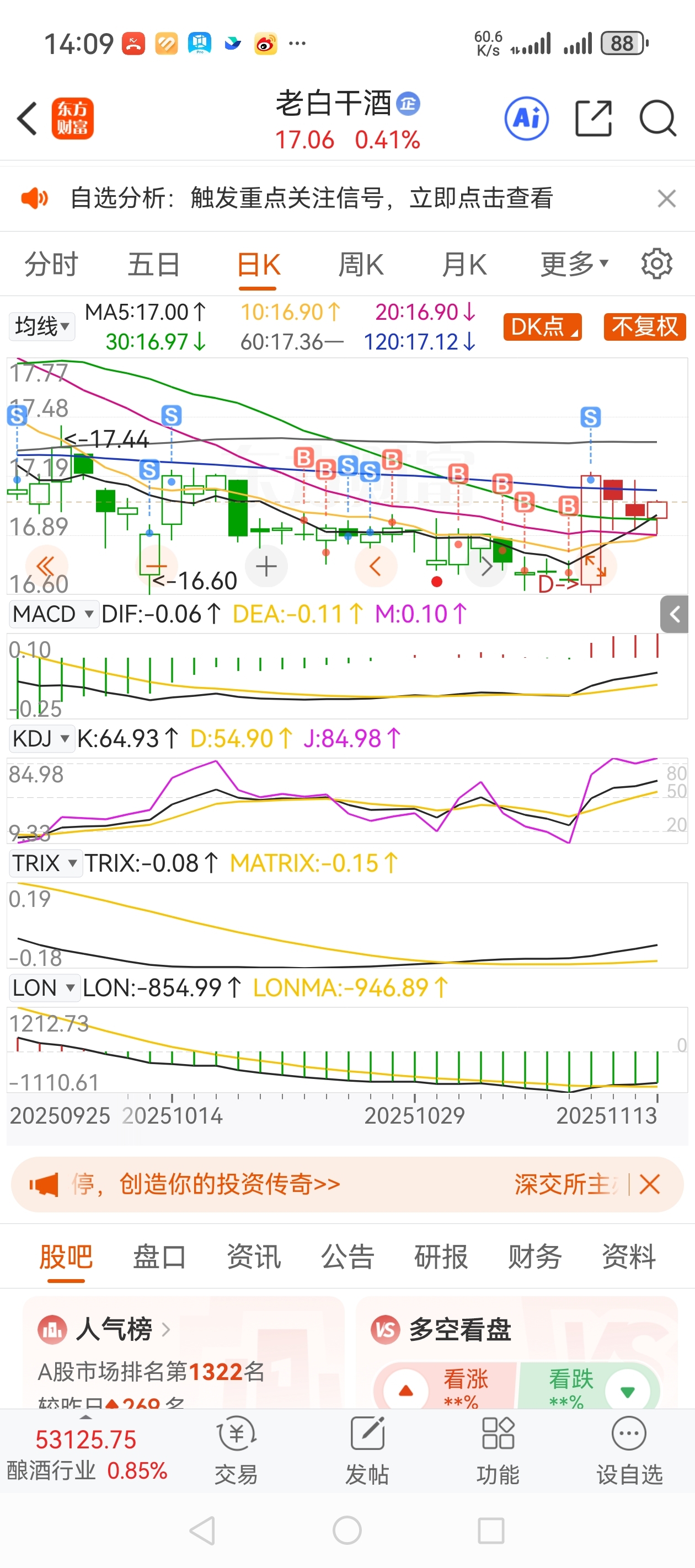白干的春天要来了,趋势在变好,就是不知道什么时候会大拉,目前我持仓不动了,要不是