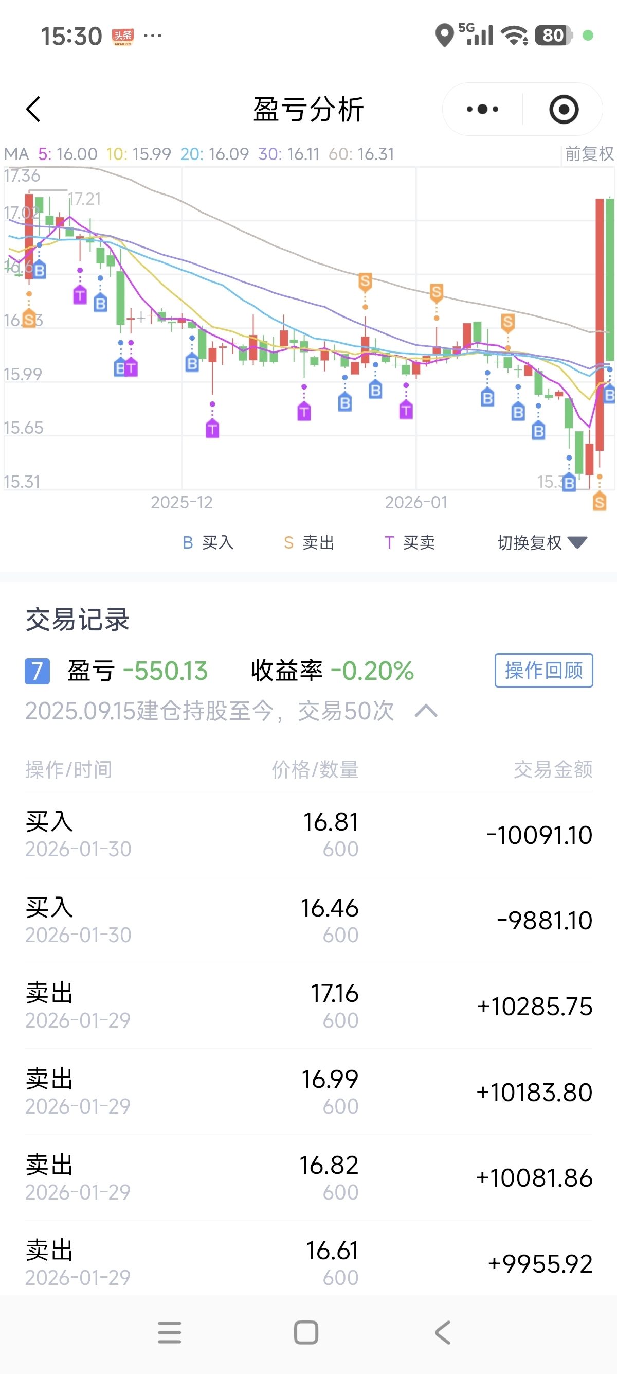 被套了,只能高抛低吸,从最高成本17.6,现在成本16.3