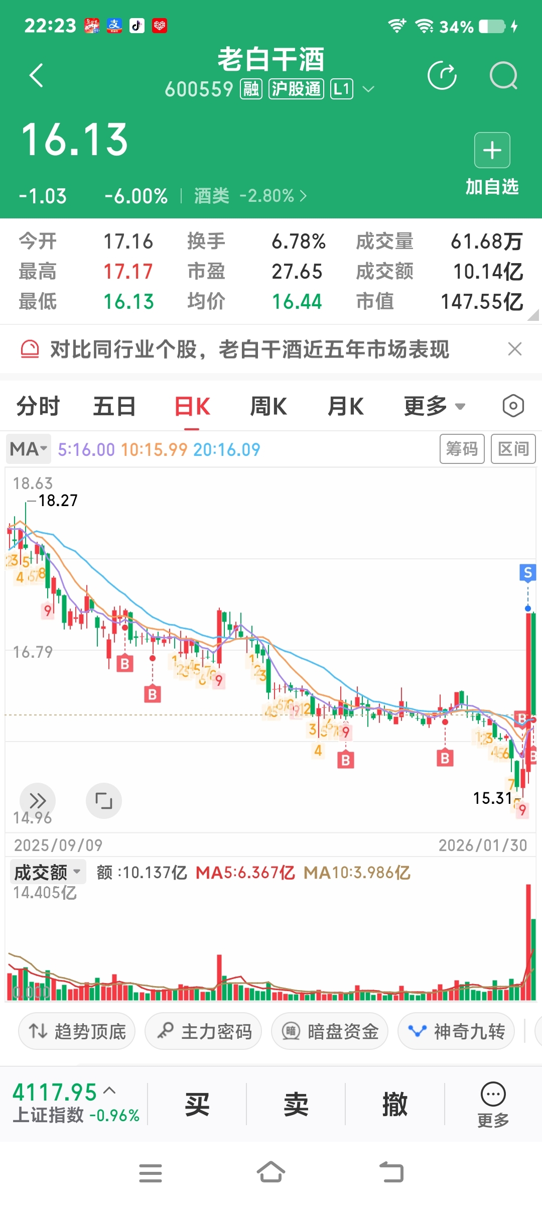 $老白干酒(SH600559)$ 谁是主力,恩人啊,谢谢你救了我