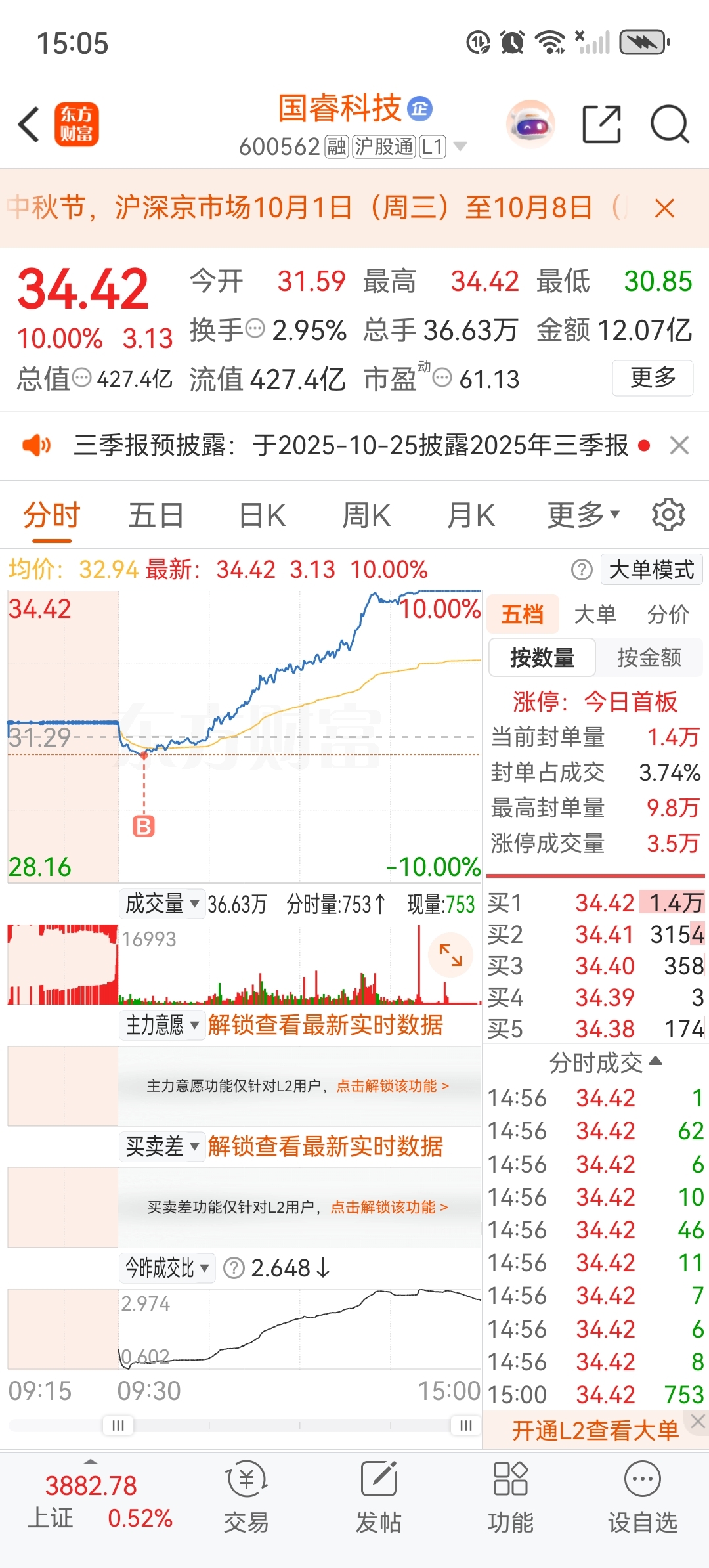 $国睿科技(SH600562)$ 上午水下无意间,半仓买入,谢谢主力节日大红包