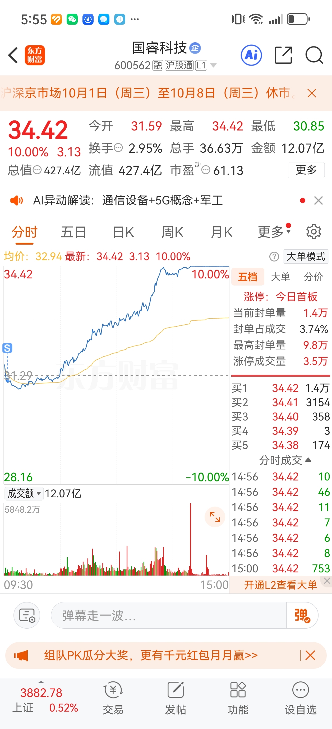 $国睿科技(SH600562)$ 谁能安慰我一下