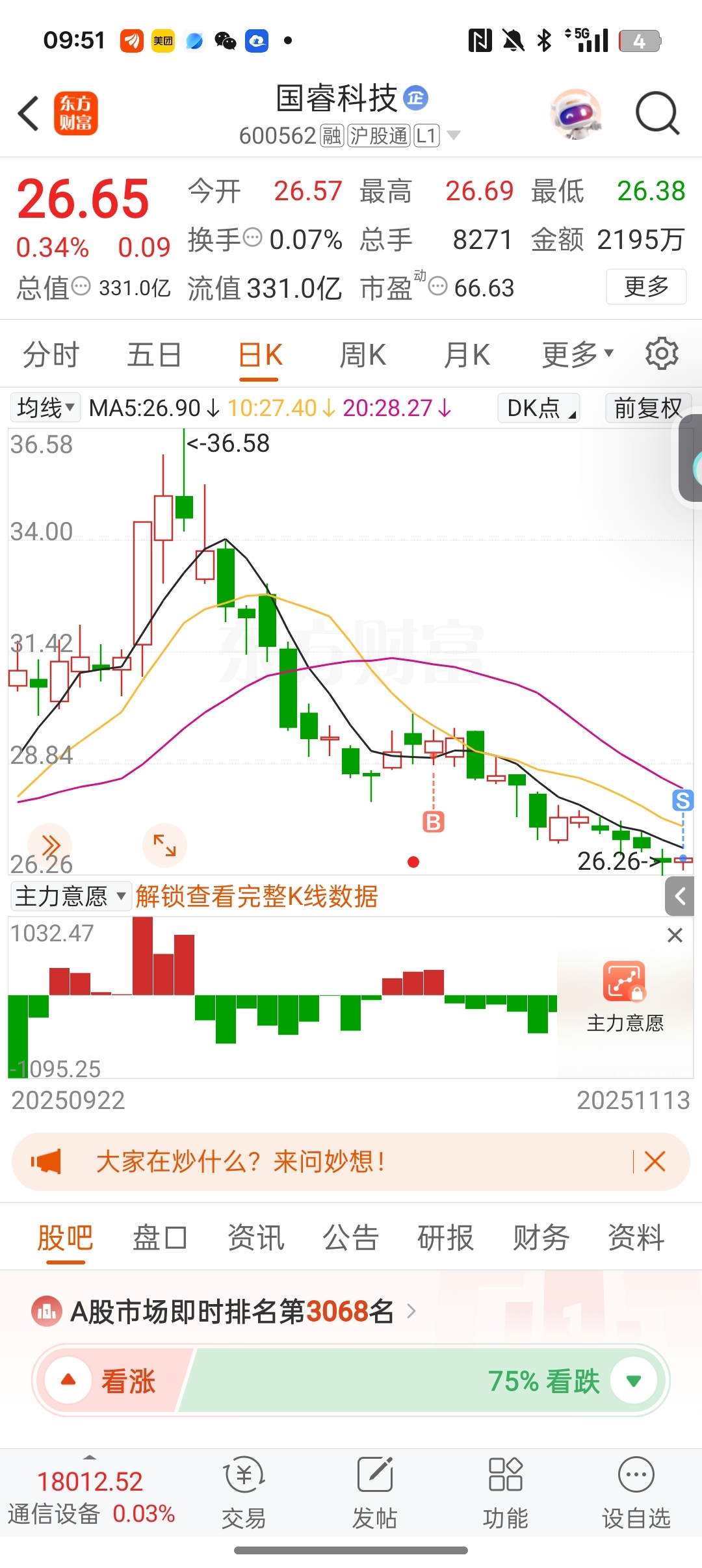 $国睿科技(SH600562)$ 走了,兄弟们,熬不住了