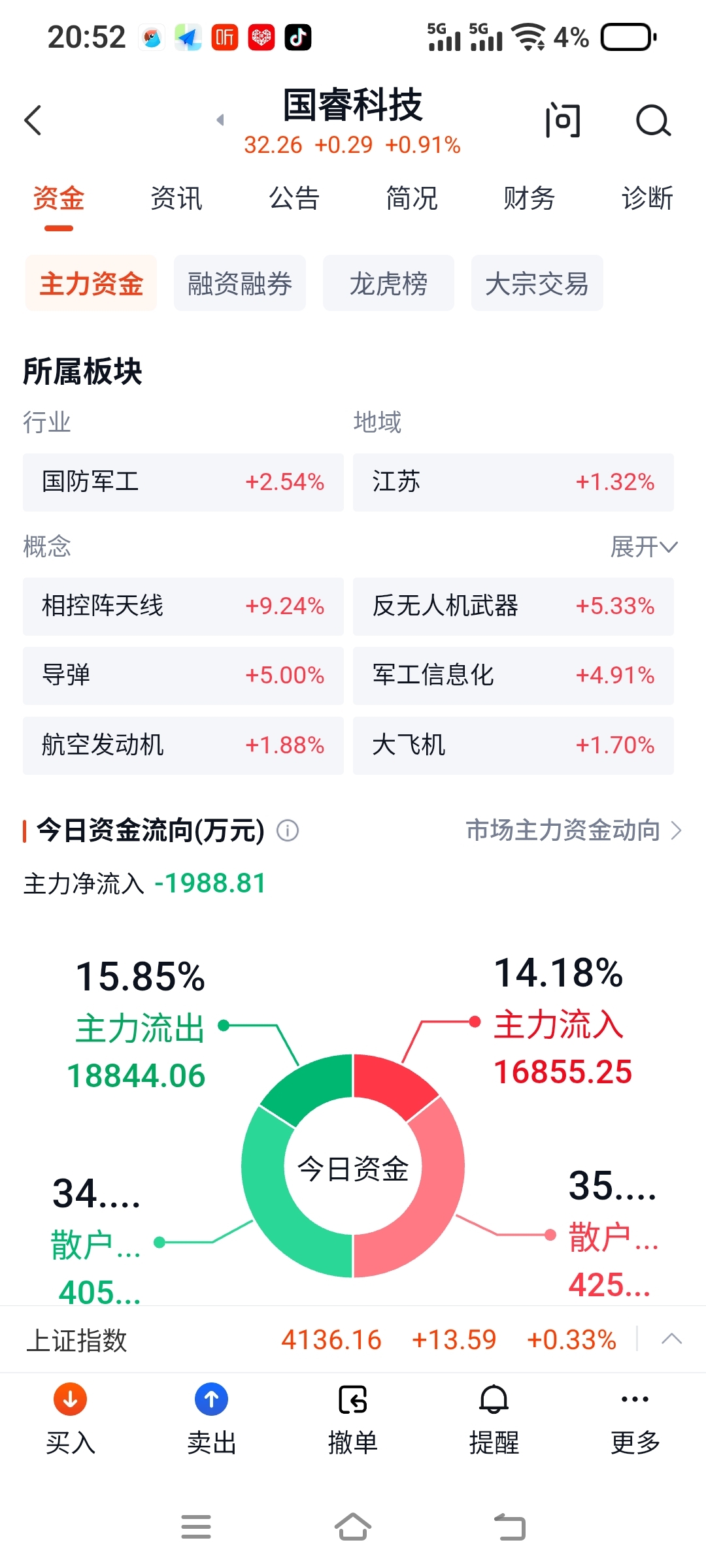 $国睿科技(SH600562)$ 今天10点以后仍有机构在源源不断砸盘,但昨天的千手大单不见了,上百手的单子不断,造成资金净流出,在相控板块倒数第一,罪魁祸首还应是ETF,不过做空能量基本释放,ETF的筹码已经没多少了,下周有望报复上涨。加油!