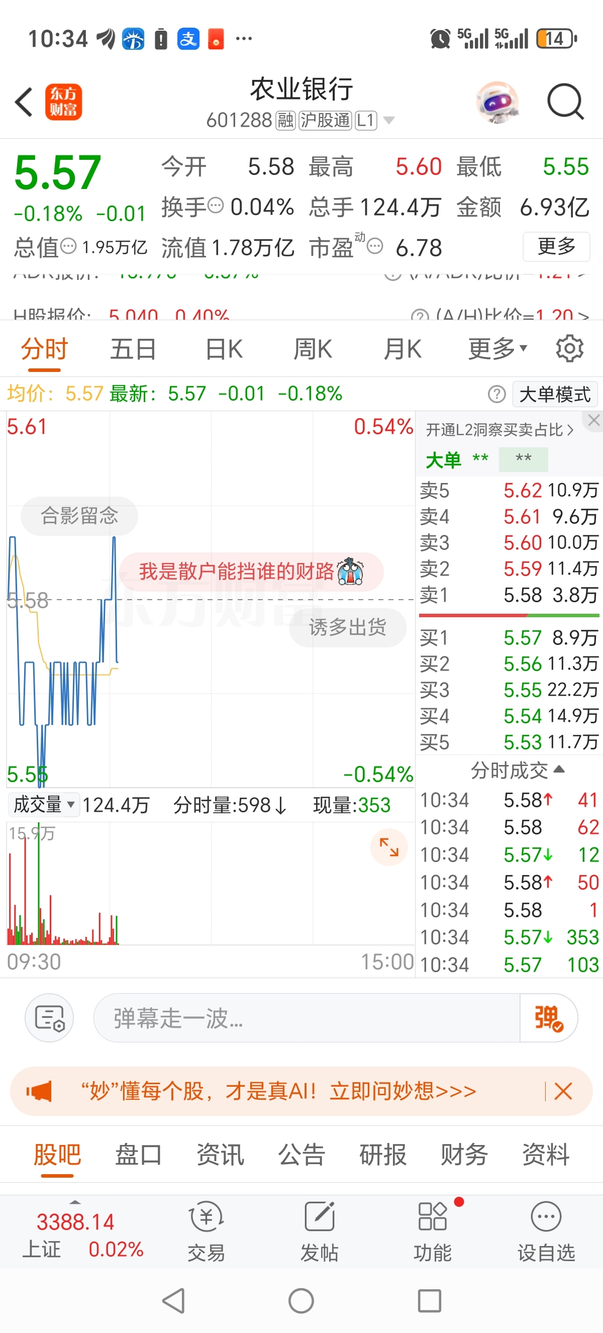 $法拉电子(SH600563)$ 买了农行吃股息