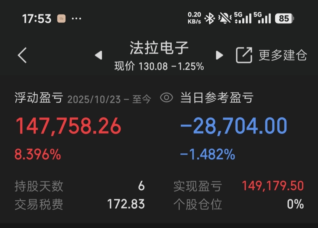 $法拉电子(SH600563)$ 今天最低点出了,六天赚了八个多点可以了,业绩中规中矩吧,明天涨还是跌就看主力的,不过我感觉明天这个恶庄不会让大家好受