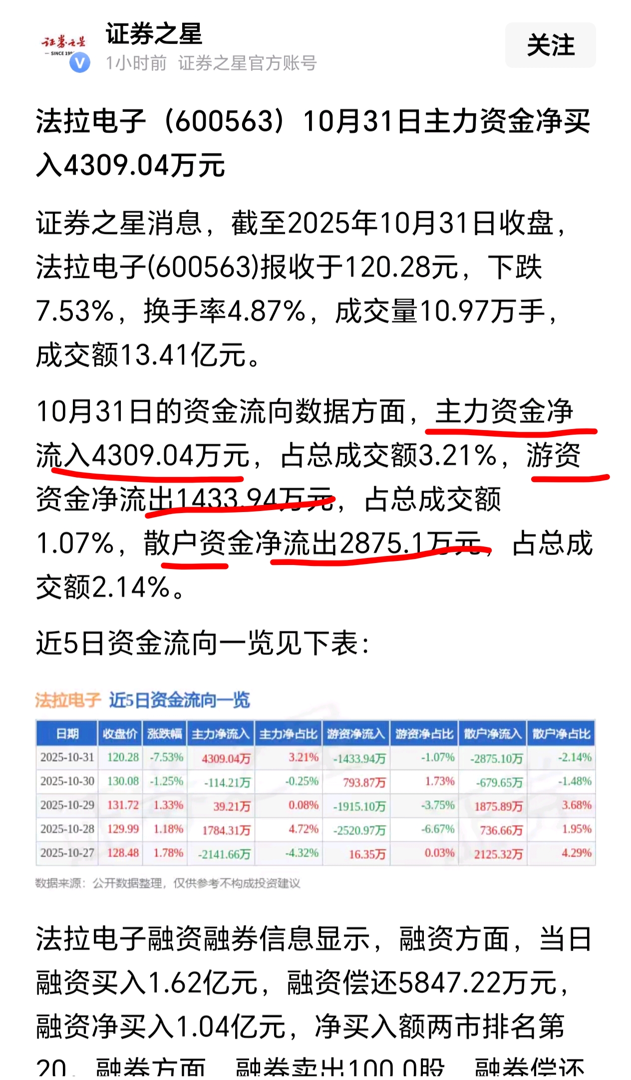 $法拉电子(SH600563)$ 主力买进去4000万游资和散户出来了4000万。融资盘搞进去1个亿,这说明什么?