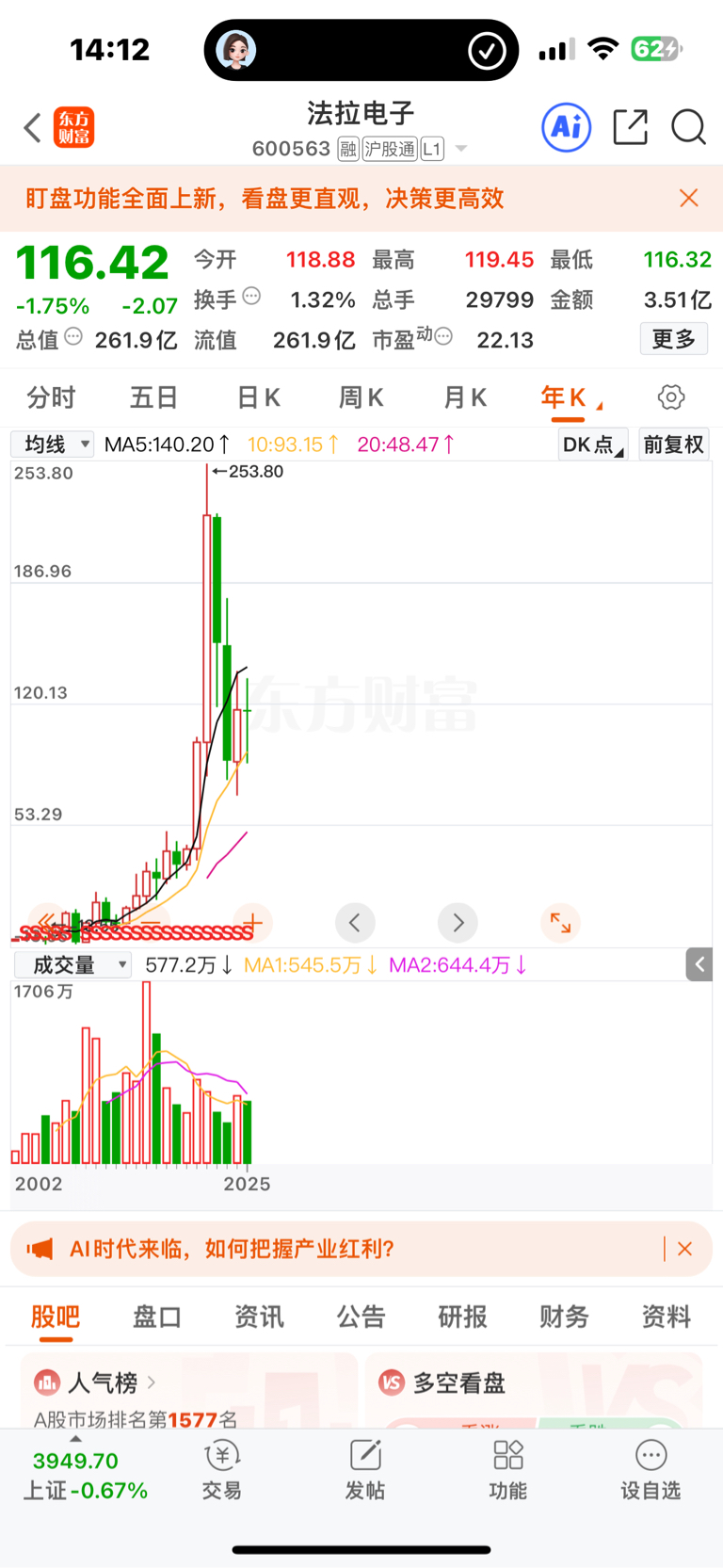 法拉电子2025落后同行业板块60%的涨幅,究竟是什么问题?别的公司就没问题是吗?怎么人家年内平均涨幅58%,你却还要跌?什么问题能让你如此逆天的不跟板块?