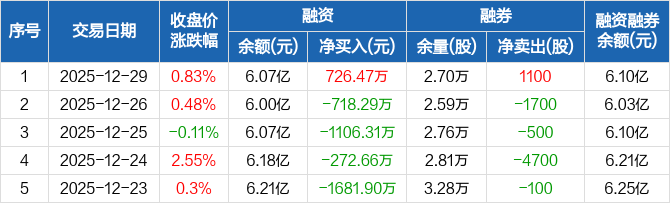法拉电子:融资净买入726.47万元,融资余额6.07亿元(12-29)