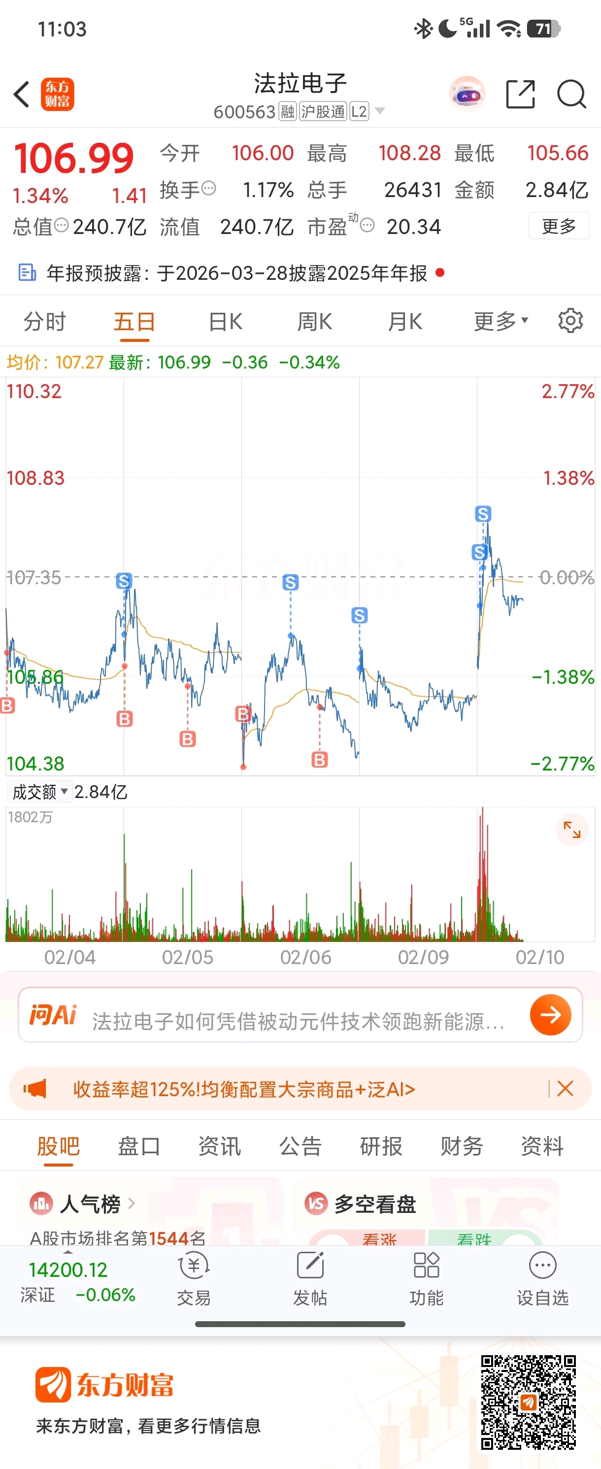 $法拉电子(SH600563)$  多高的高手才能在一两个点做差价  没有空间 做毛线差价