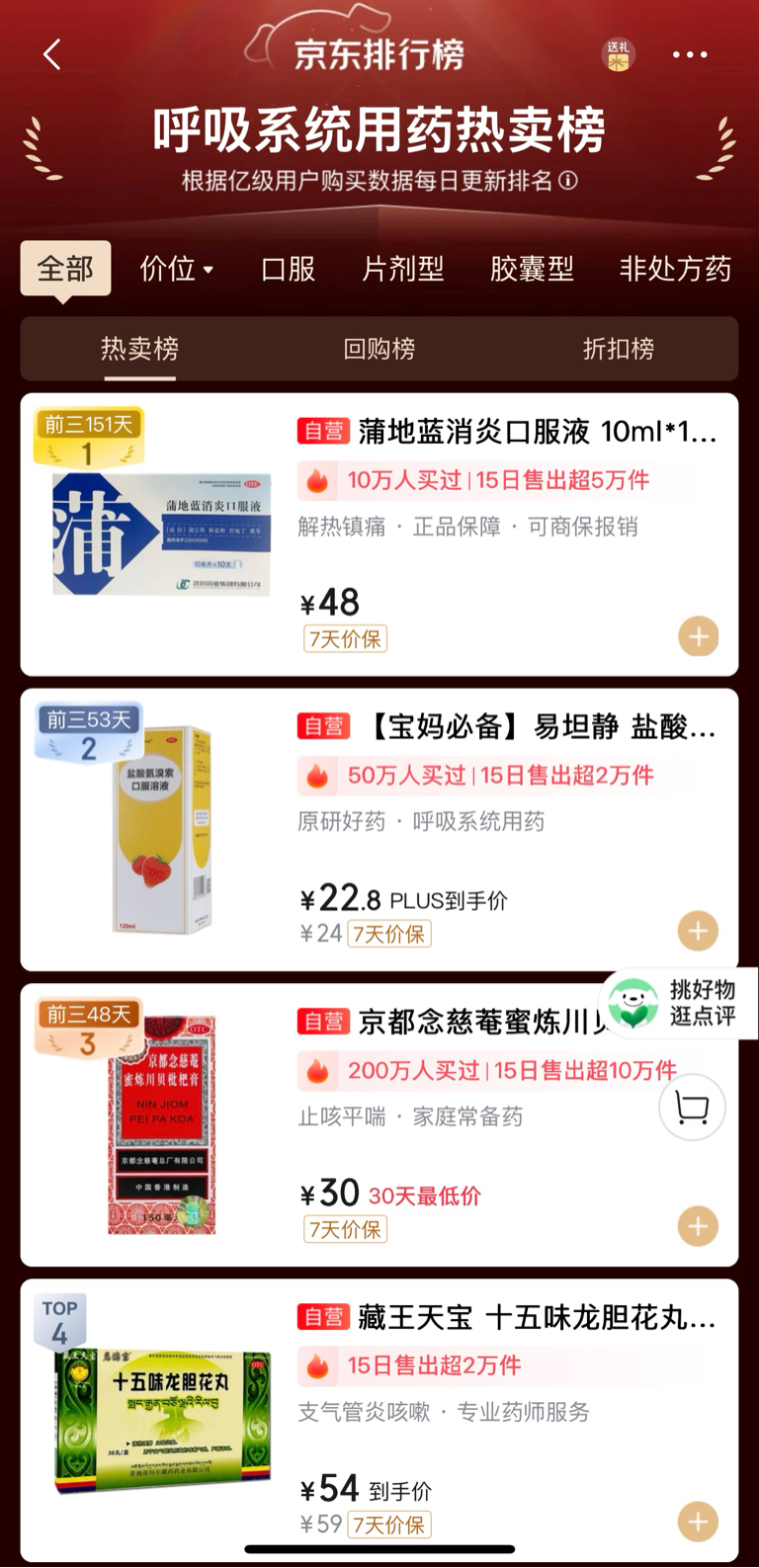 牛逼,主产品蒲地兰干到呼吸道京东用药第一流感大药囤