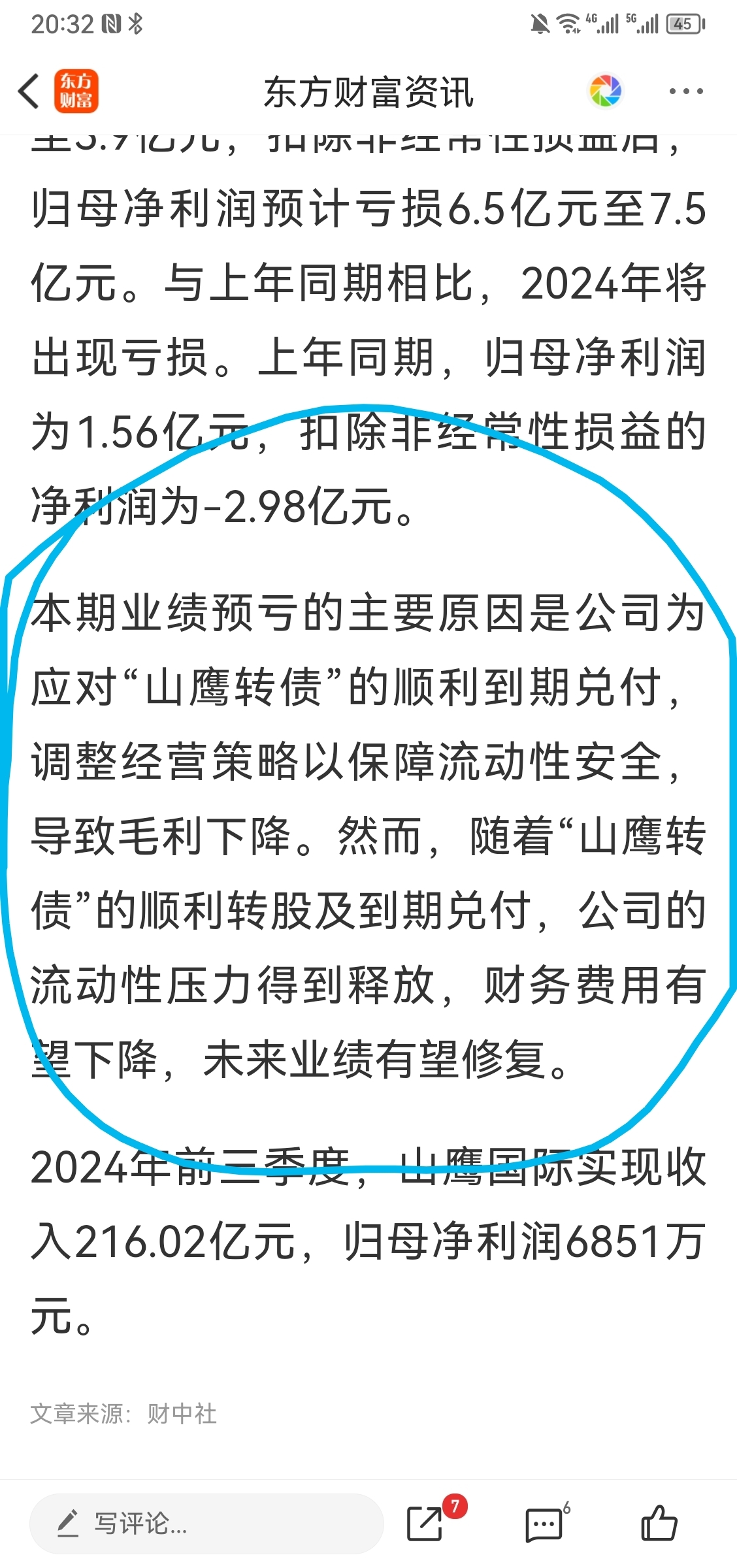 $山鹰国际(SH600567)$ 2024年公司为应对“山鹰转债”顺利到期兑付,公司阶段性经营策略转向保障“流动性安全”,至三季度起,公司毛利较上年同期水平有所下滑。随着“山鹰转债”顺利转股及到期兑付,公司流动性压力释放,财务费用进一步下降,未来业绩有望得到修复。