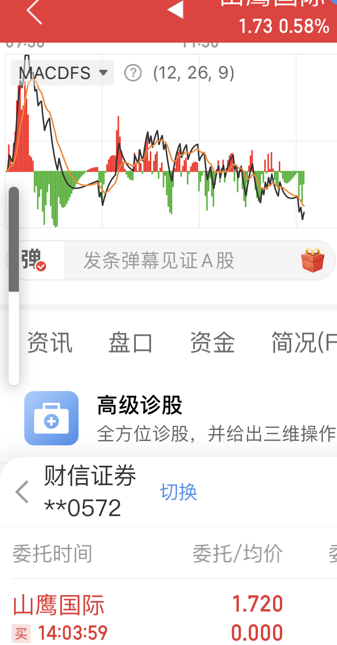$山鹰国际(SH600567)$ 1.72收盘,直接满仓挂单买入