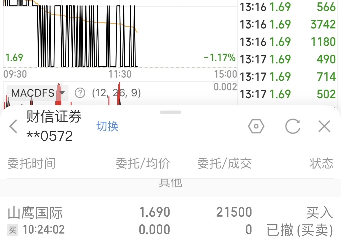 $山鹰国际(SH600567)$ 还要跌,还好撤单了