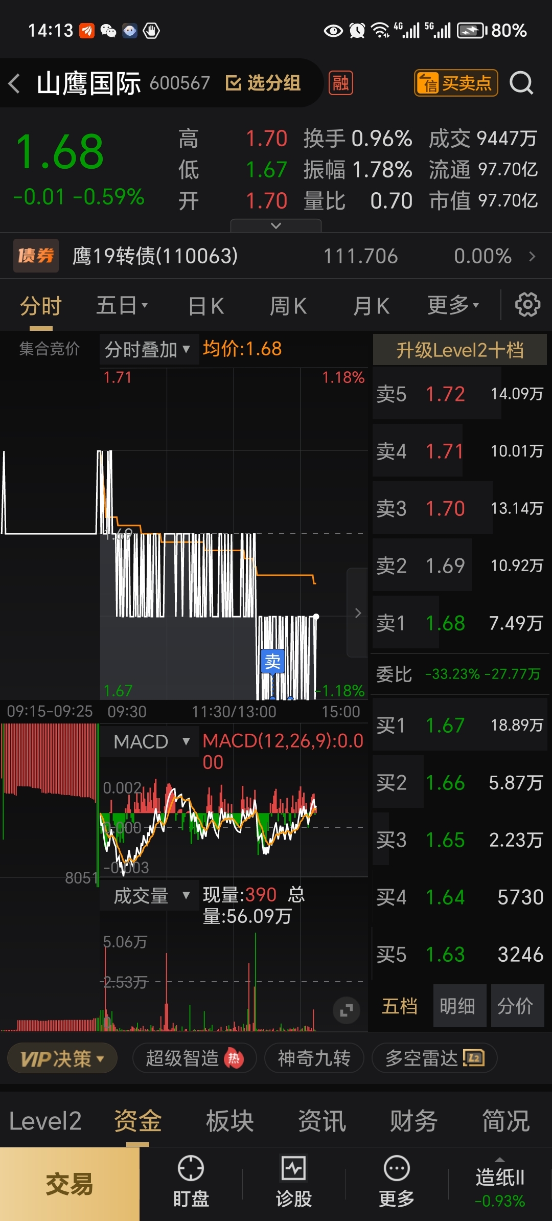 跌股这么多,我对$山鹰国际(SH600567)$ 受不了了,底位减了仓