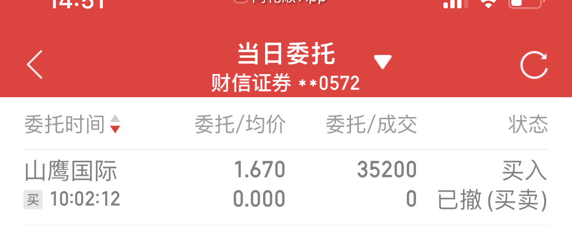 $山鹰国际(SH600567)$ 还好,买入撤单了