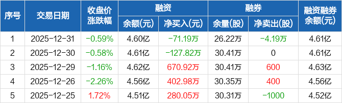山鹰国际:融资净偿还71.19万元,融资余额4.6亿元(12-31)