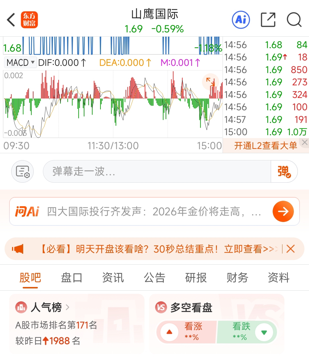 温馨提示: 1.根据《证券法》规定,禁止编造、传播虚假信息或者误导性信息,扰乱证券市场;2.用户在本社区发表的所有资料、言论等仅代表个人观点,与本网站立场无关,不对您构成任何投资建议。用户应基于自己的独立判断,自行决定证券投资并承担相应风险。《东方财富社区管理规定》