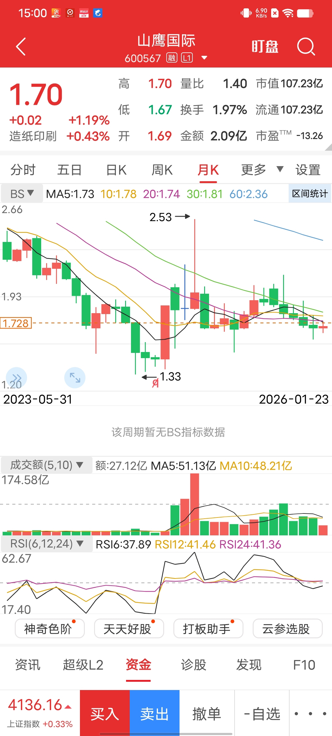 $山鹰国际(SH600567)$ 卧底不追高,韭菜变镰刀。山鹰国际月线六连阴,本月开始开启触底反攻一路长虹!