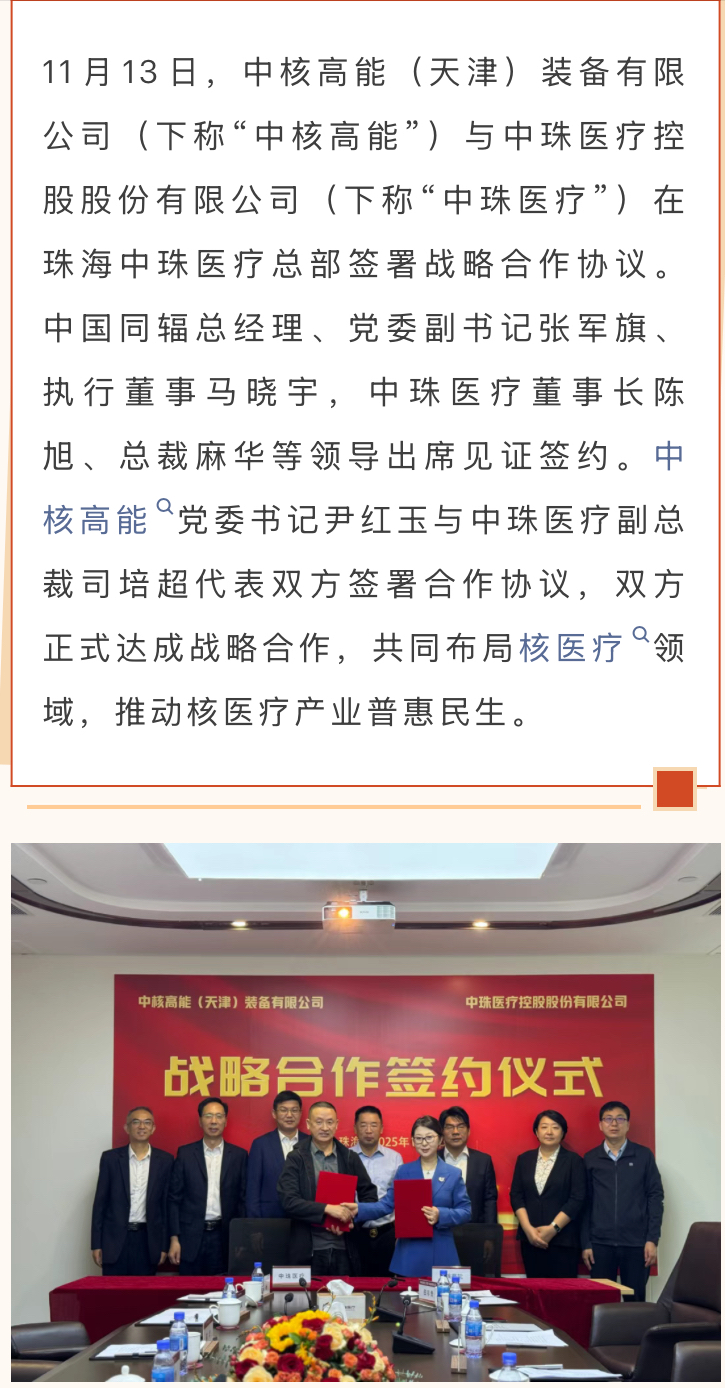 中核高能与中珠医疗签署战略合作协议,共促核医疗发展