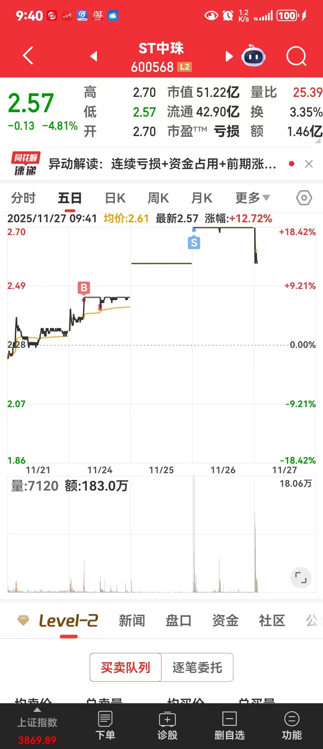 $ST中珠(SH600568)$ $*ST中装(SZ002822)$ 作为超短,昨天就撤退了,中装今天竞价也走了,下次再玩