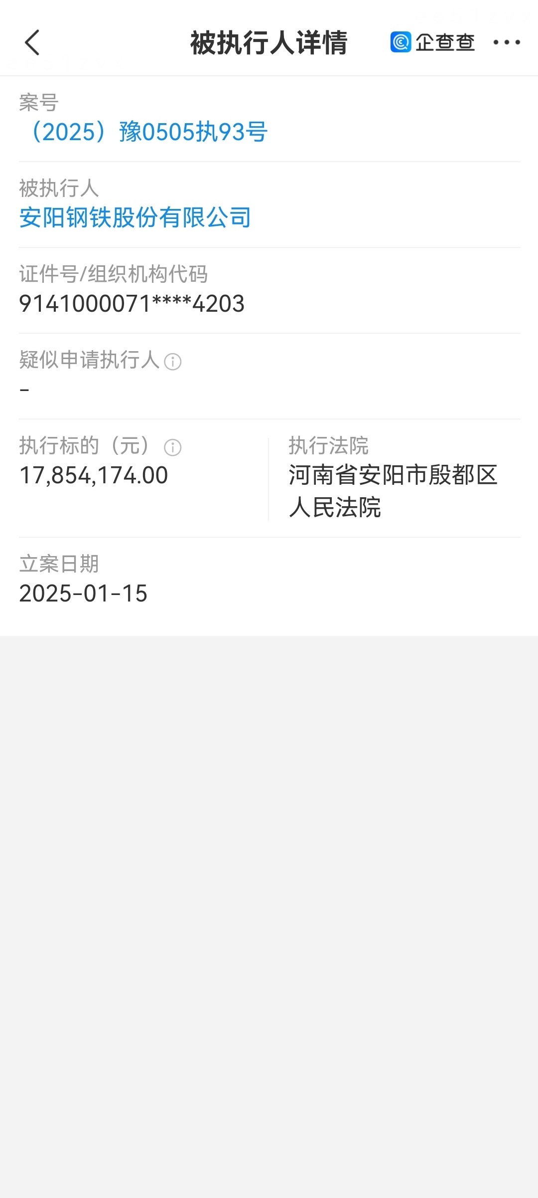 安阳钢铁目前已经是被执行人,执行金额高达1785万