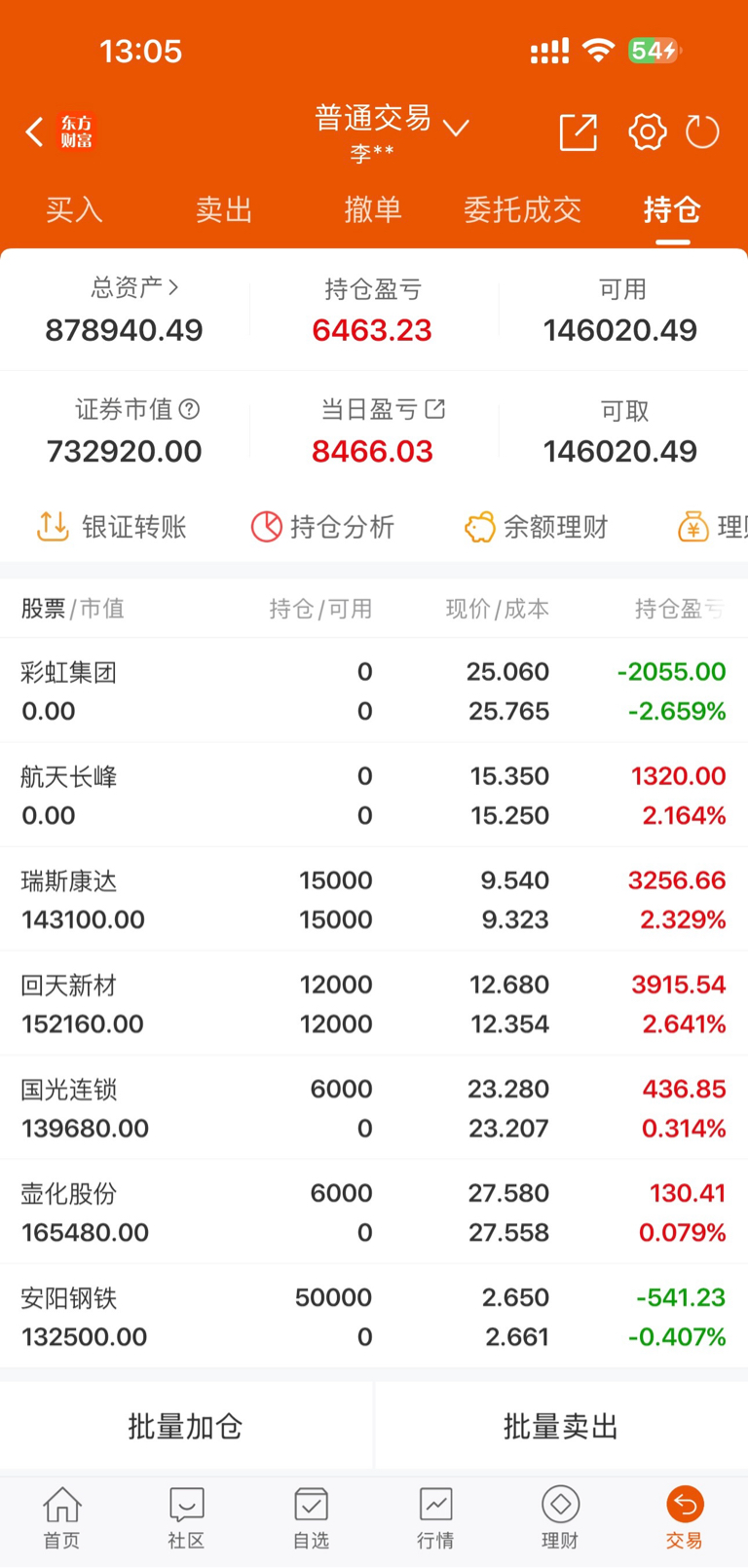 【11月5日】下午操作:上午把彩虹集团也落袋了;瑞斯康达、回天新材继续不动,还没