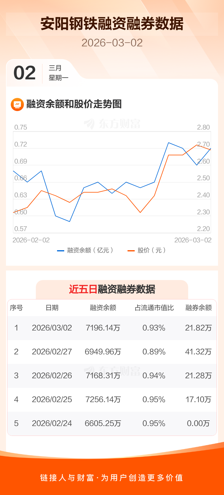 交易所最新数据显示,安阳钢铁于2026年3月2日获融资买入1718.00万元,融资偿还1471.82万元,当日融资净买入246.18万元。目前,该股融资余额7196.14万,占流通市值比例为0.93%。